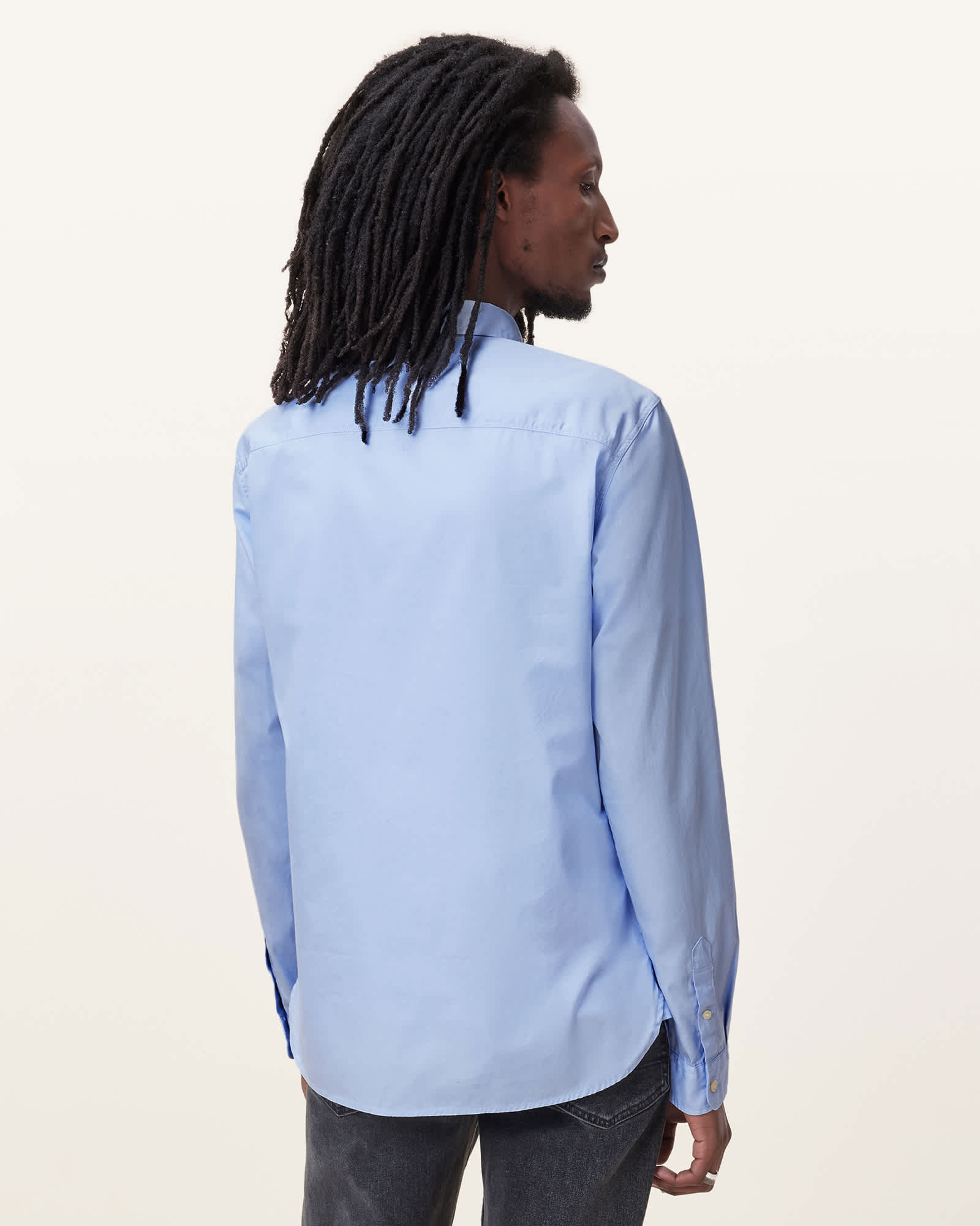 This shirt is designed to a slim fit Button closure Classic collar Long sleeves Embroidered patch Curved hem