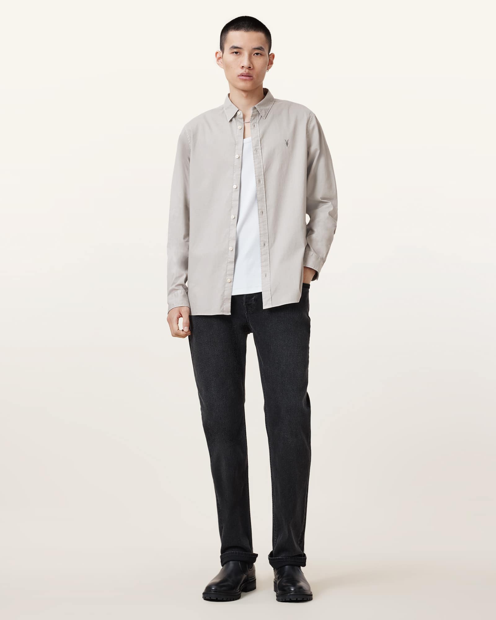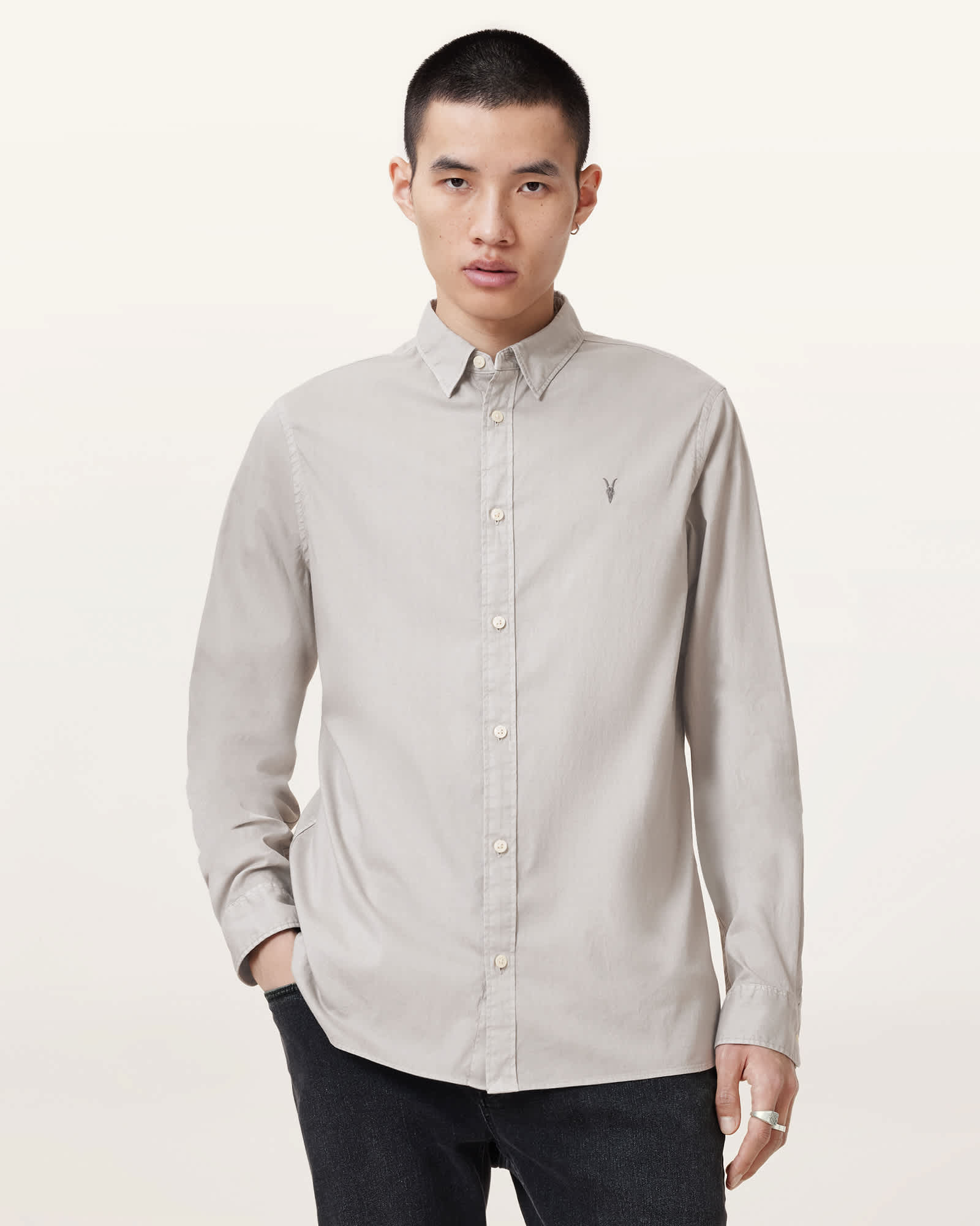 AllSaints Hawthorne Ramskull Stretch Fit Shirt,, Whisper Grey | ricciano CANADA