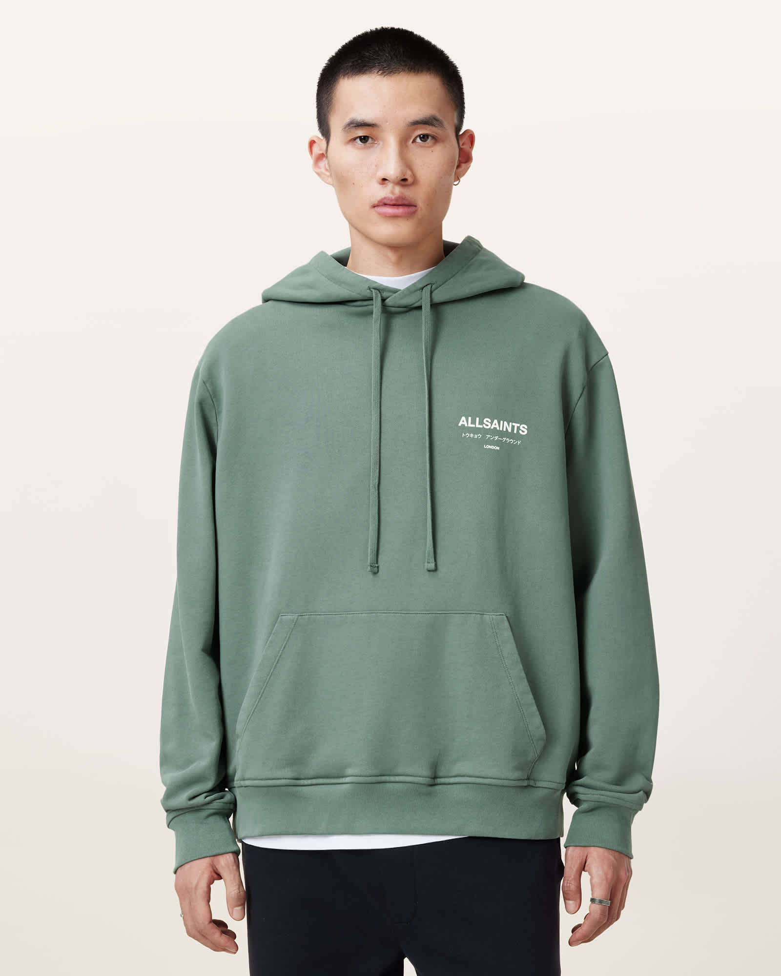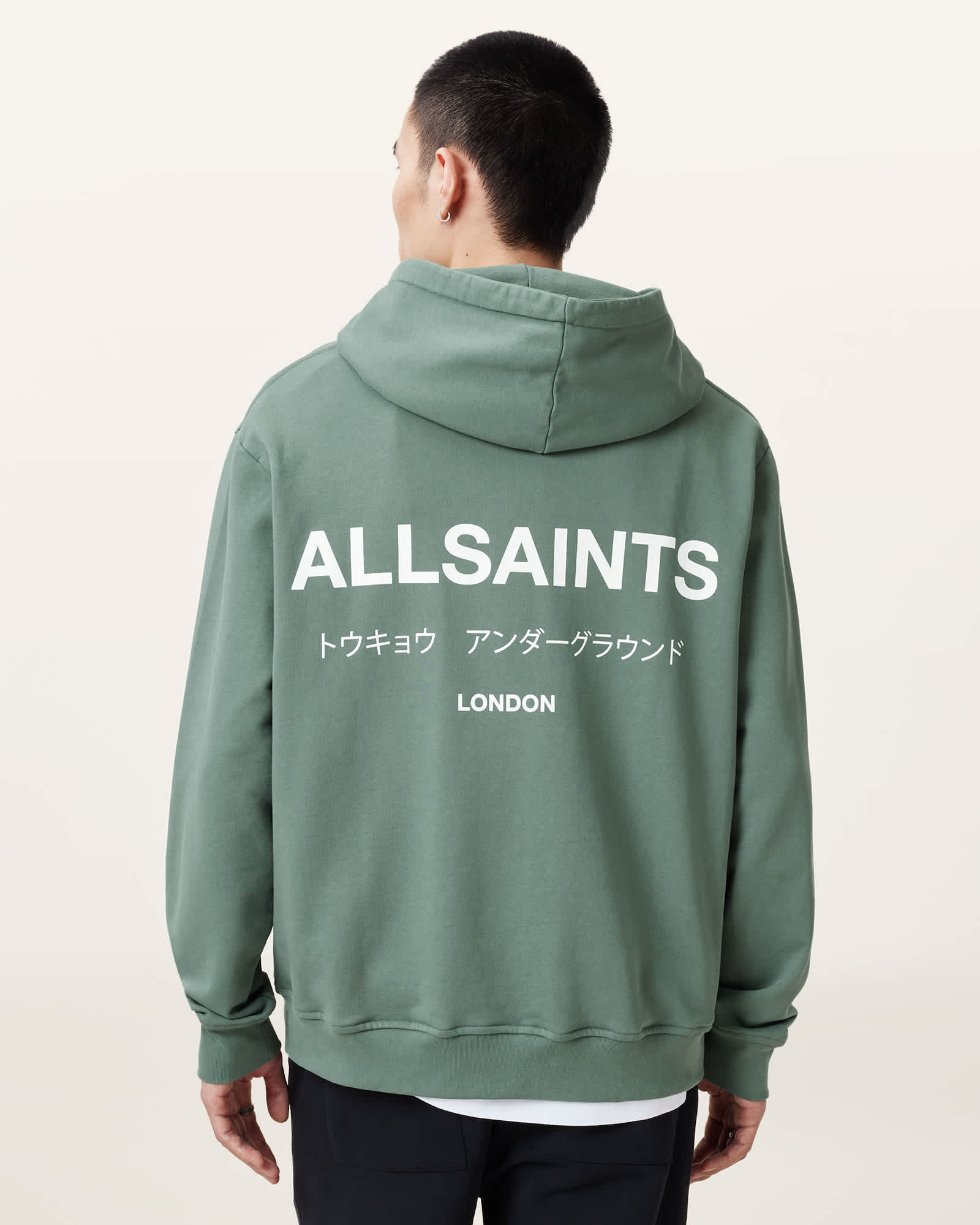 AllSaints Underground Pullover Logo Hoodie,, Smokey Green