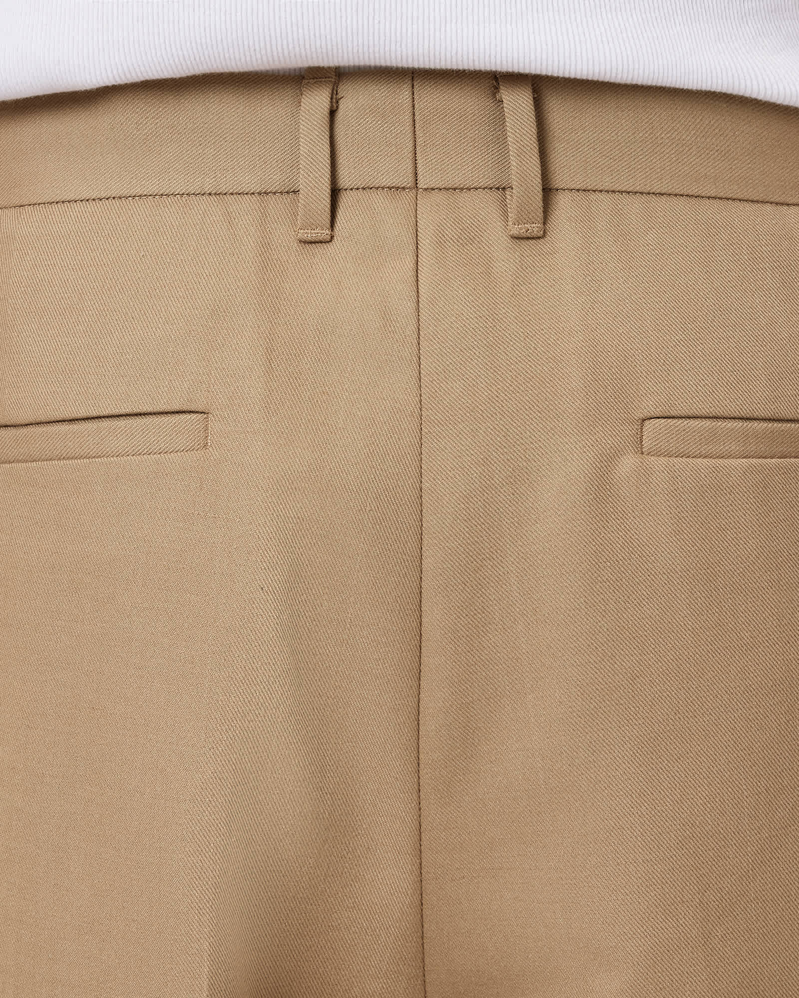 These trousers are designed to a slim fit Button and zip closure Mid-rise Cropped Subtle pleat detailing from the waistband