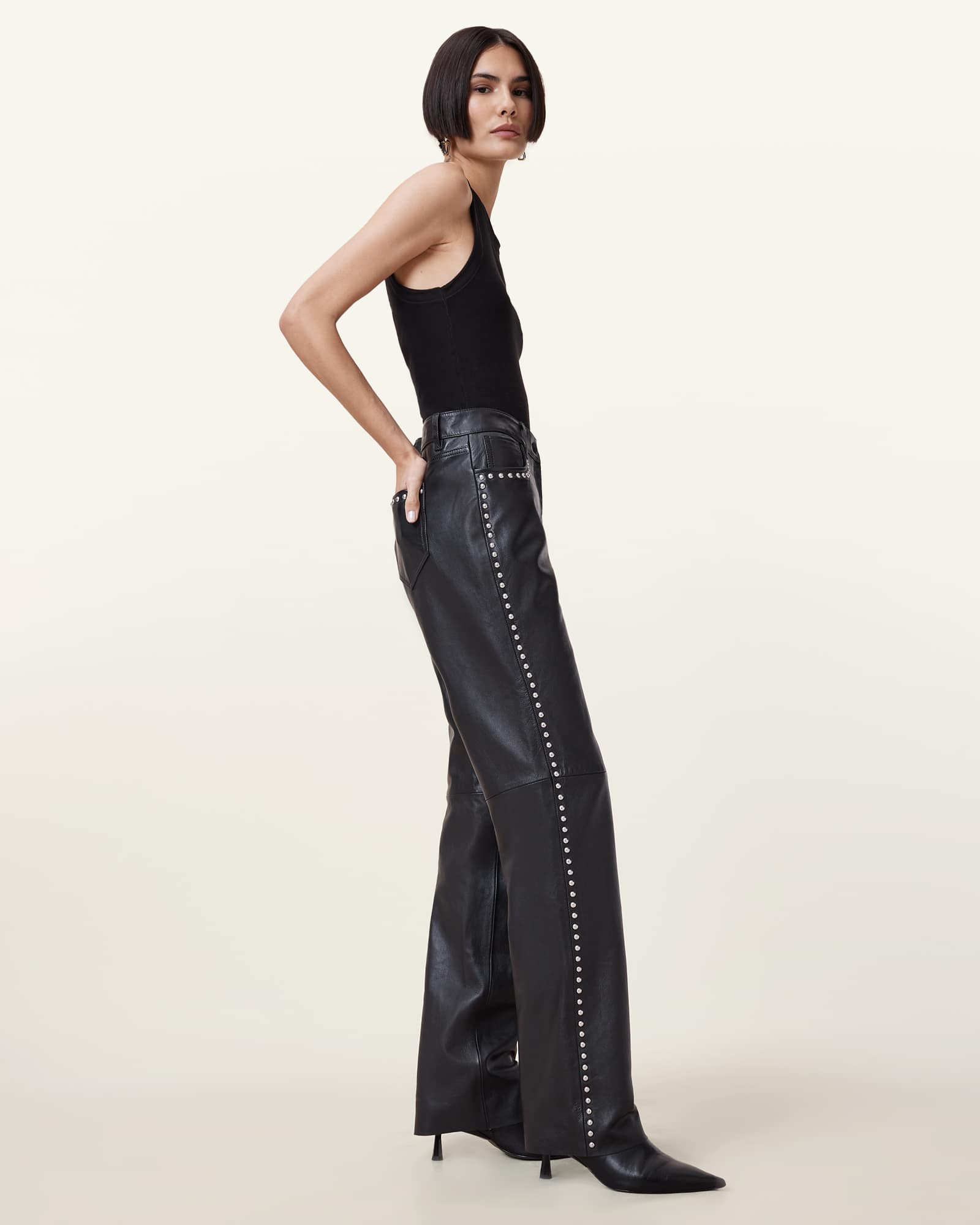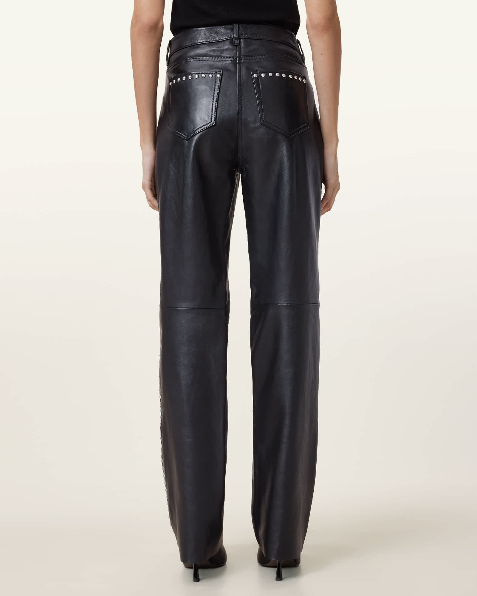 AllSaints Saige Straight Leg Leather Trousers,, Black | ricciano CANADA