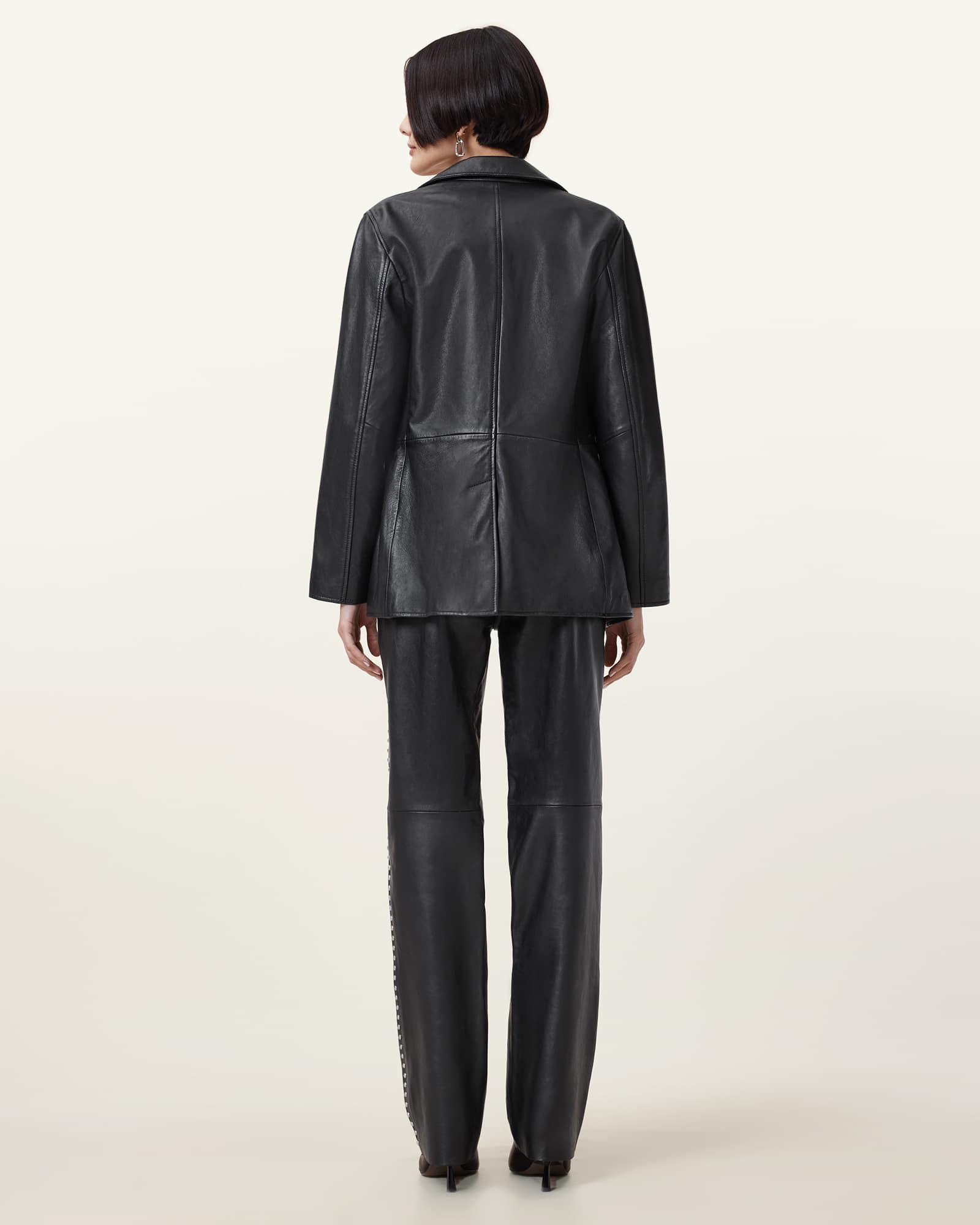 AllSaints Saige Straight Leg Leather Trousers,, Black