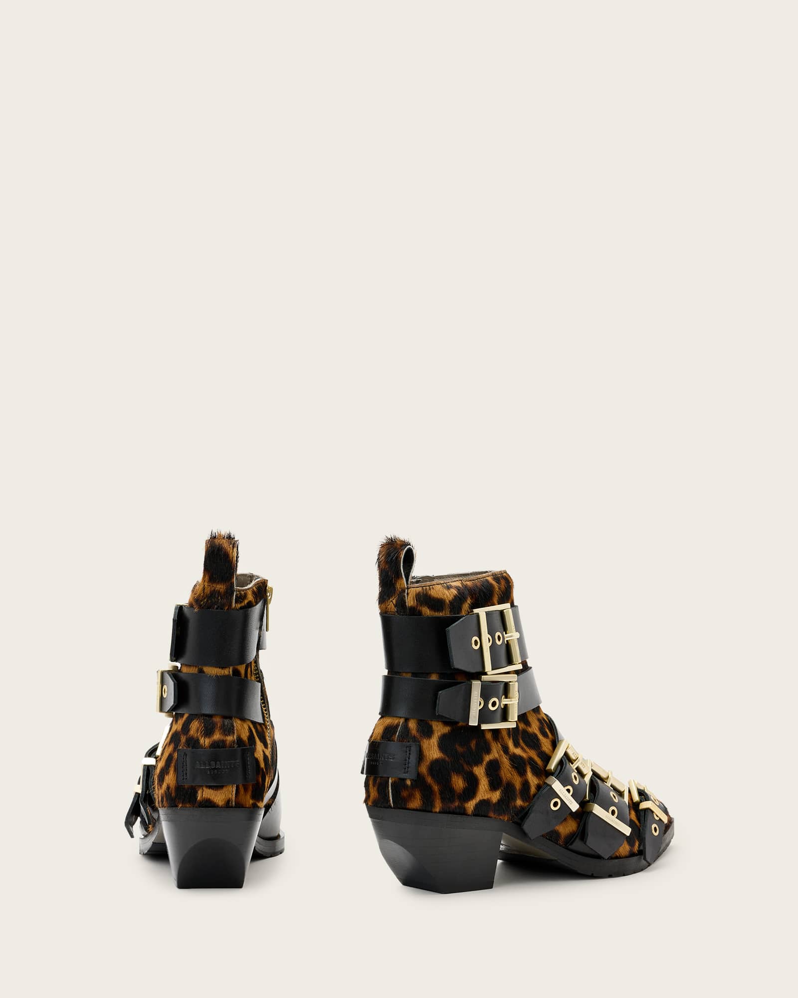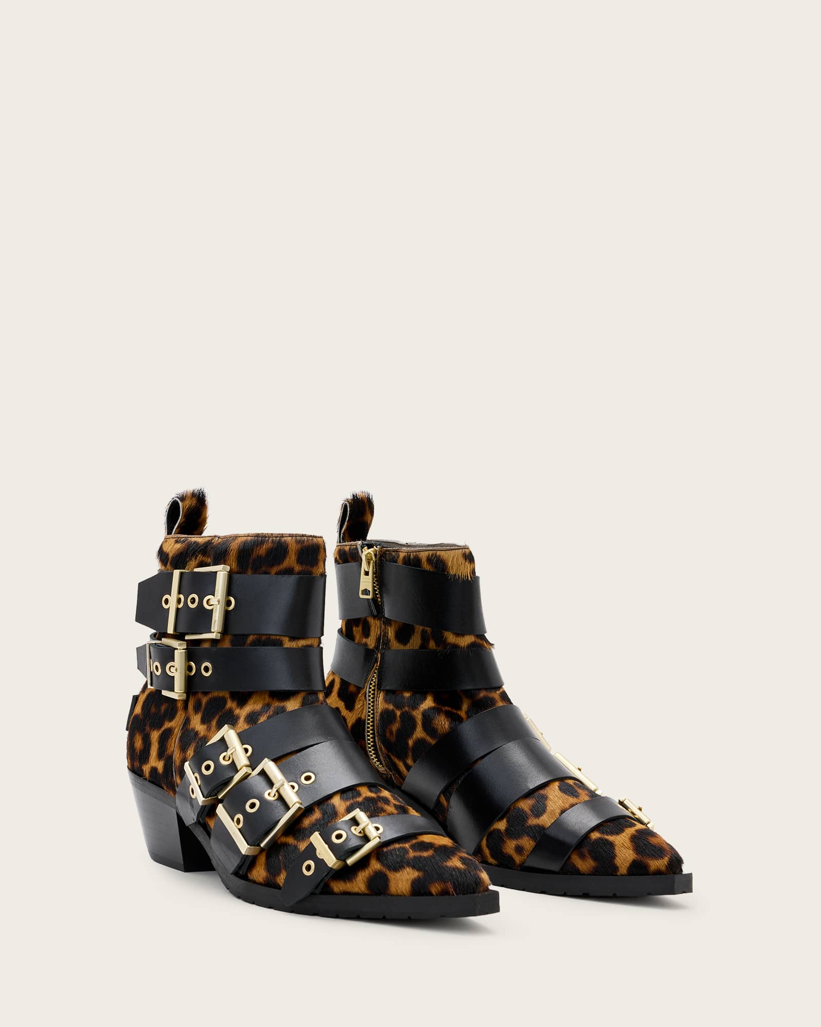 AllSaints Jane Buckle Pointed Leather Boots,, Brown/Black