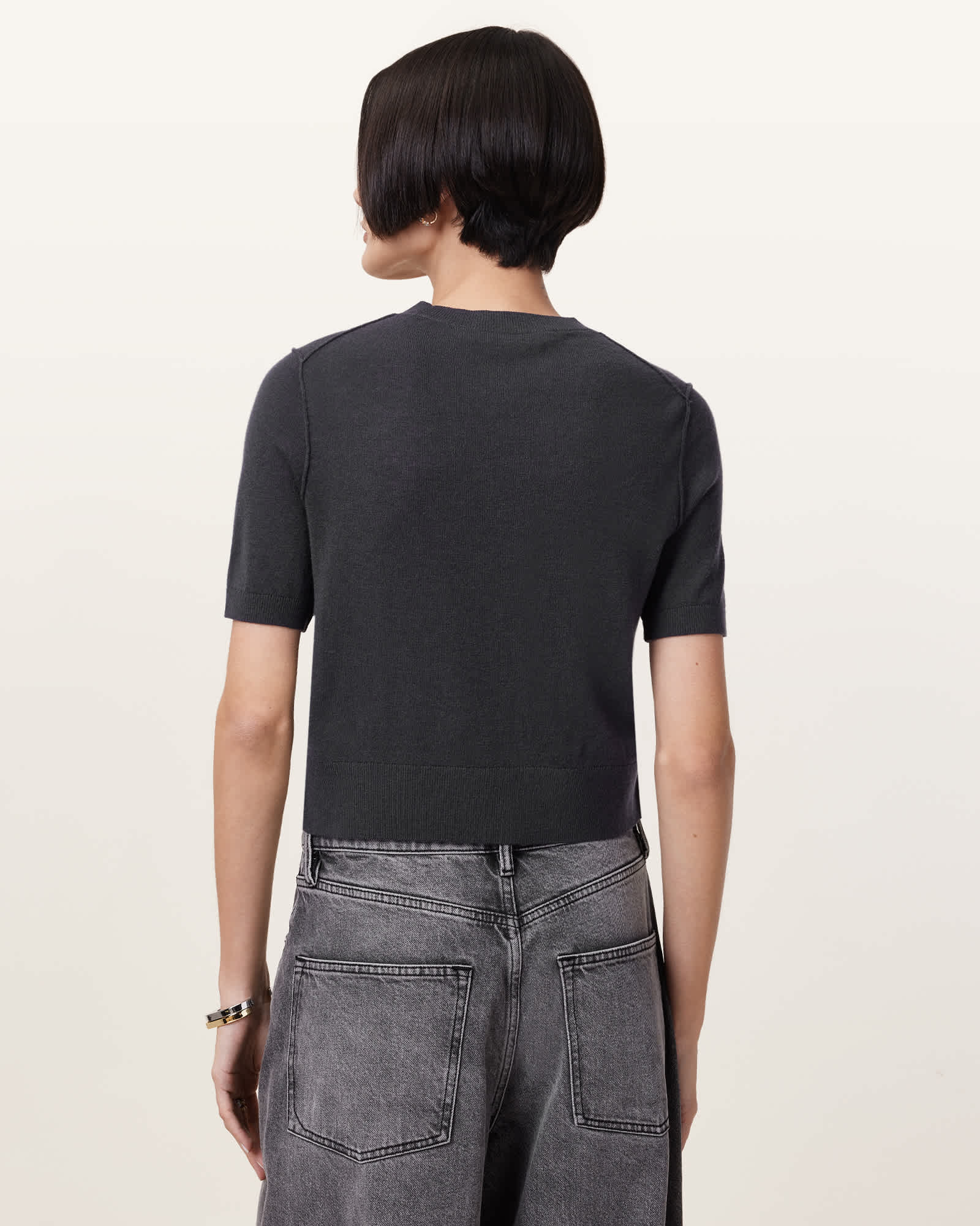AllSaints Elsie Merino Cashmere Blend T-Shirt,, Charcoal Blue