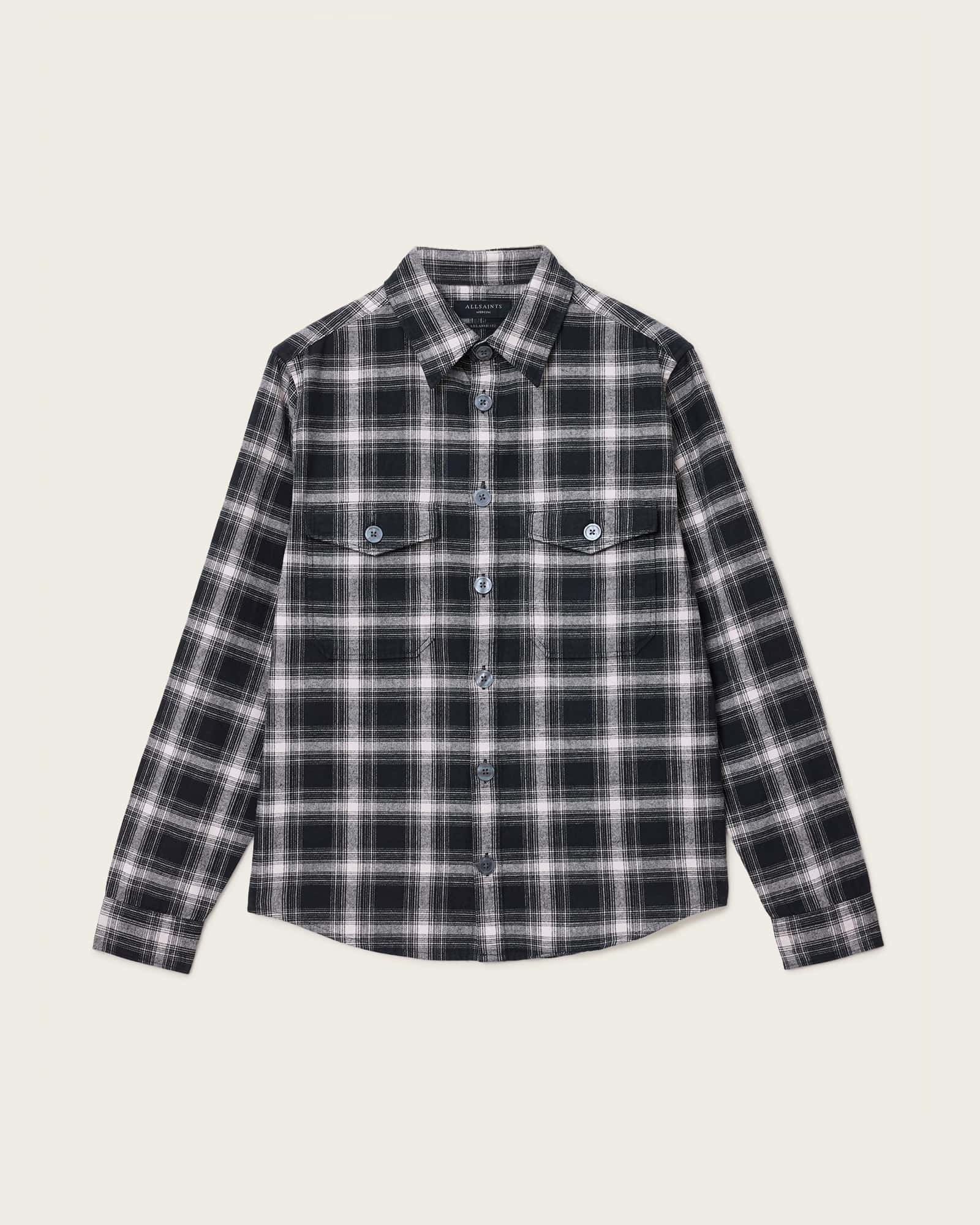 AllSaints Hamura Checked Relaxed Fit Shirt,, Black | ricciano CANADA