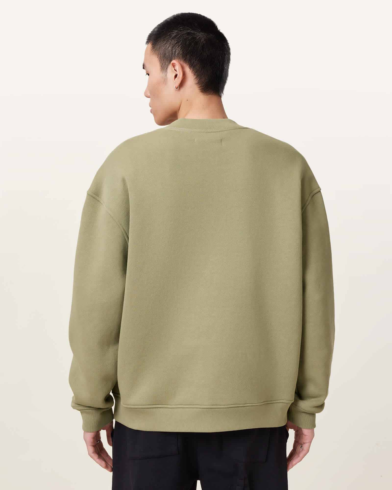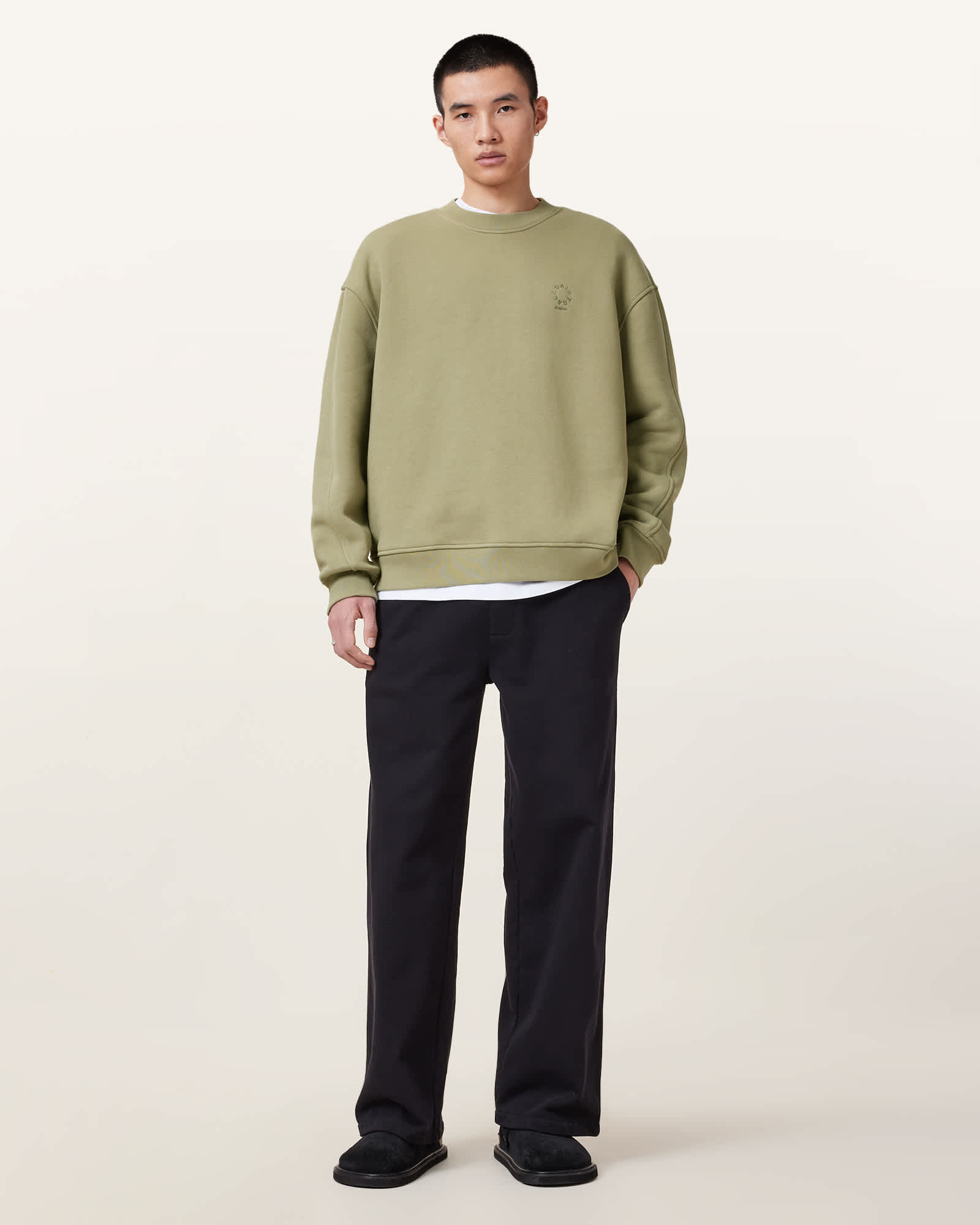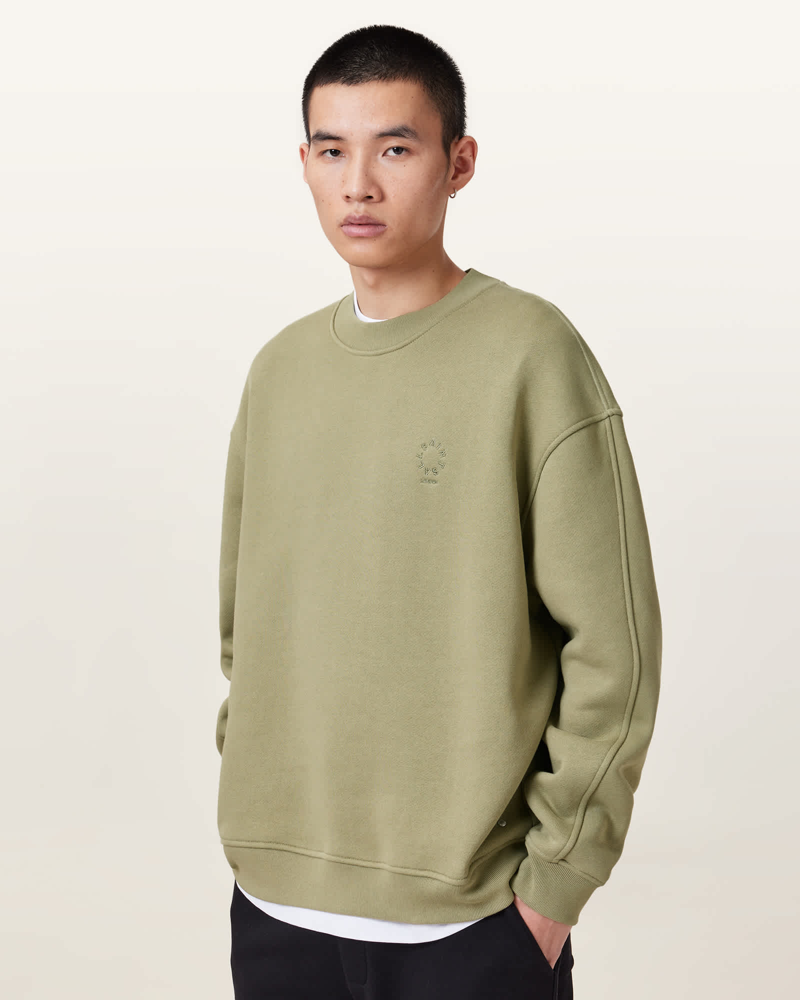 AllSaints Haven Embroidered Logo Oversized Sweatshirt,, Light Ash Green