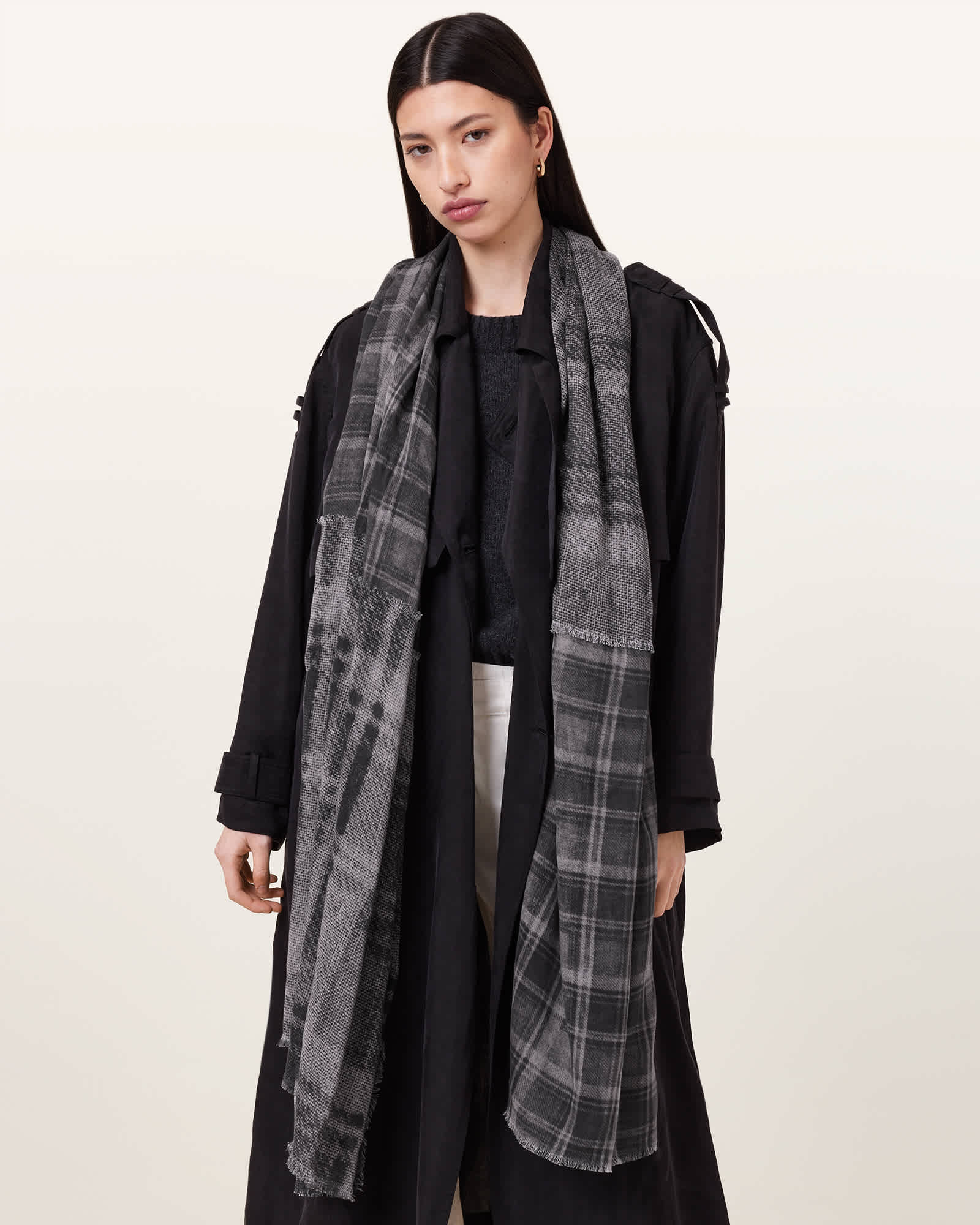 AllSaints Rumi checked scarf,, Grey/Black | ricciano CANADA