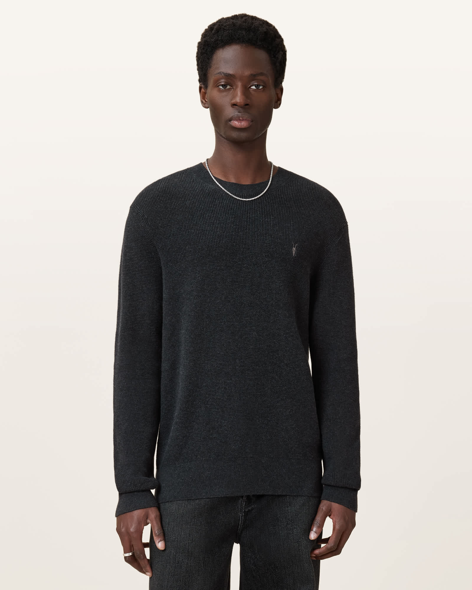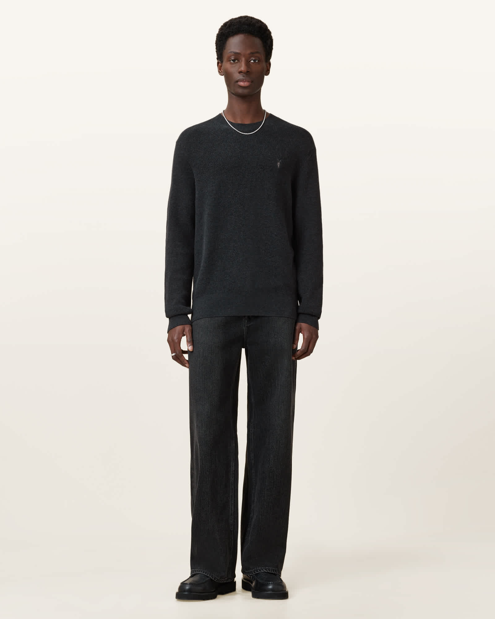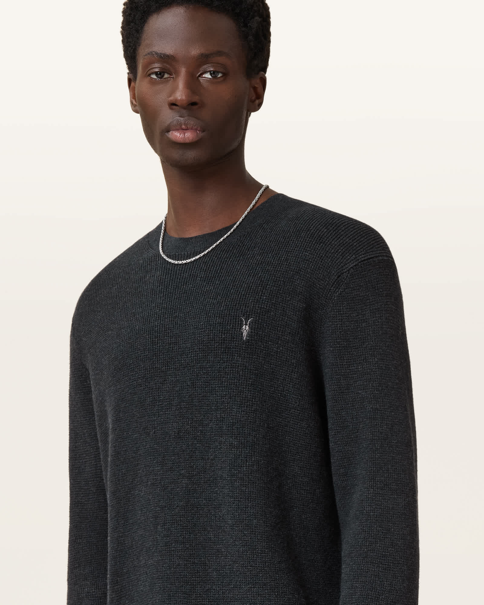 AllSaints Aspen Waffle Texture Crew Neck Ramskull Jumper,, Black