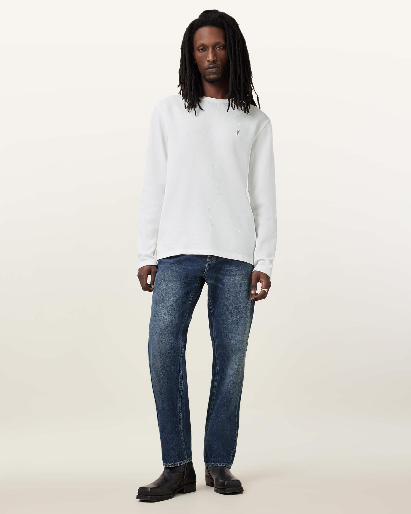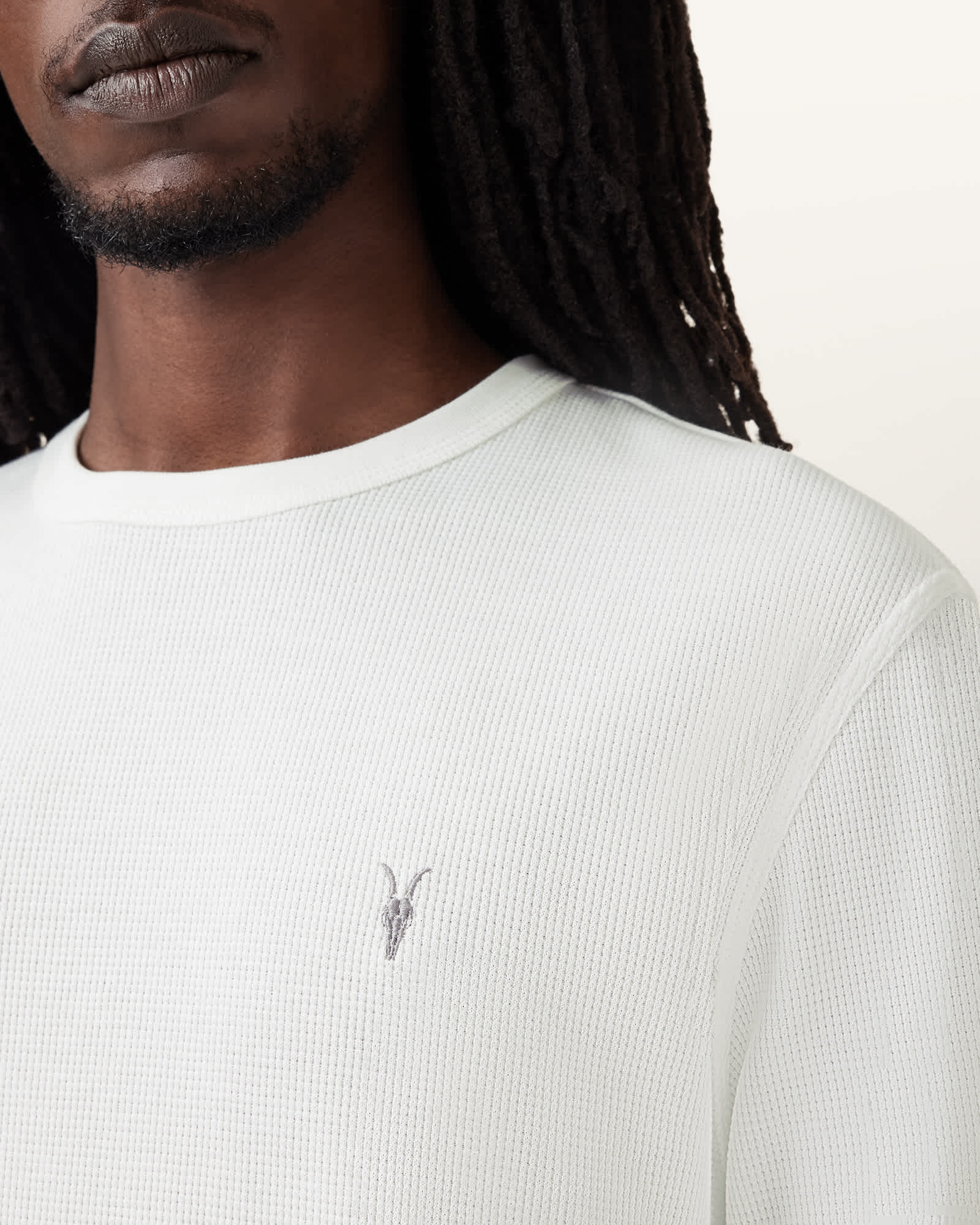 AllSaints Ellis Waffle Texture Long Sleeve Crew,, Chalk White