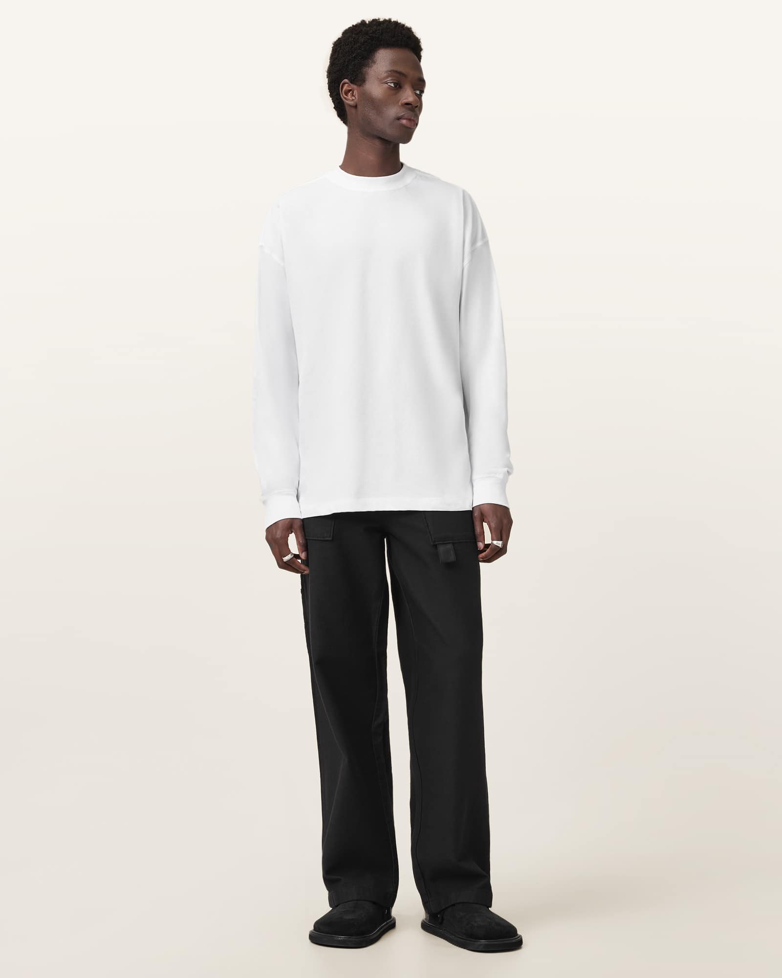 AllSaints Finn Long Sleeve Crew Neck Oversized T-Shirt,, White