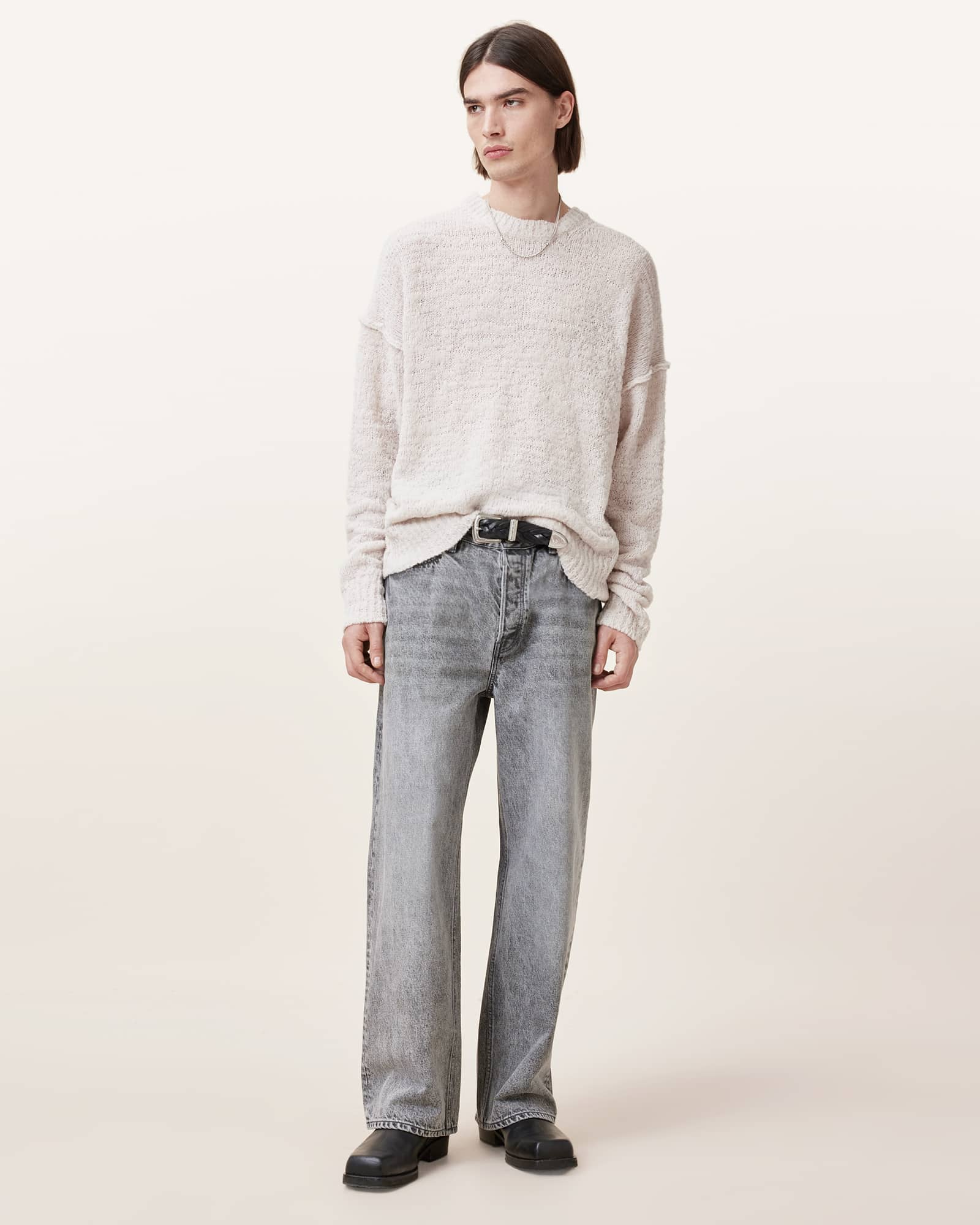 AllSaints Chillion Boxy Oversized Crew Jumper,, White