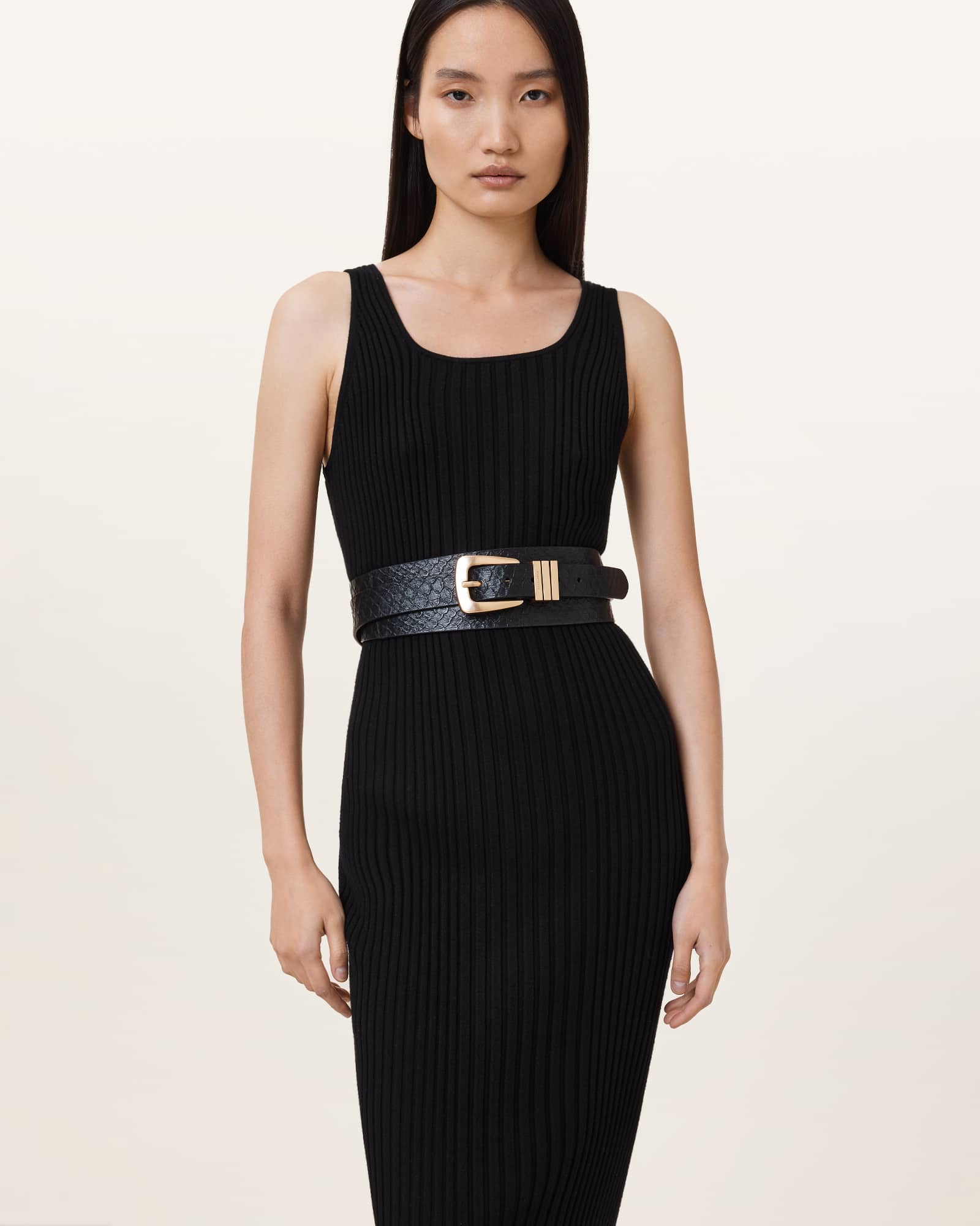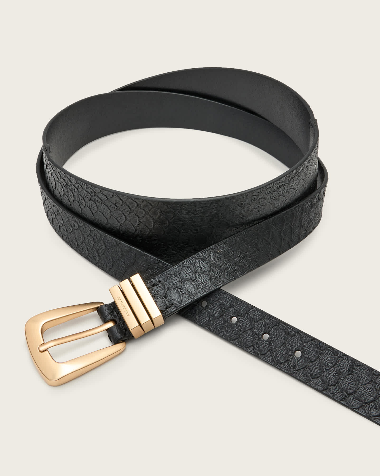 AllSaints Harper Snake Effect Leather Belt,, Black/Warm Brass