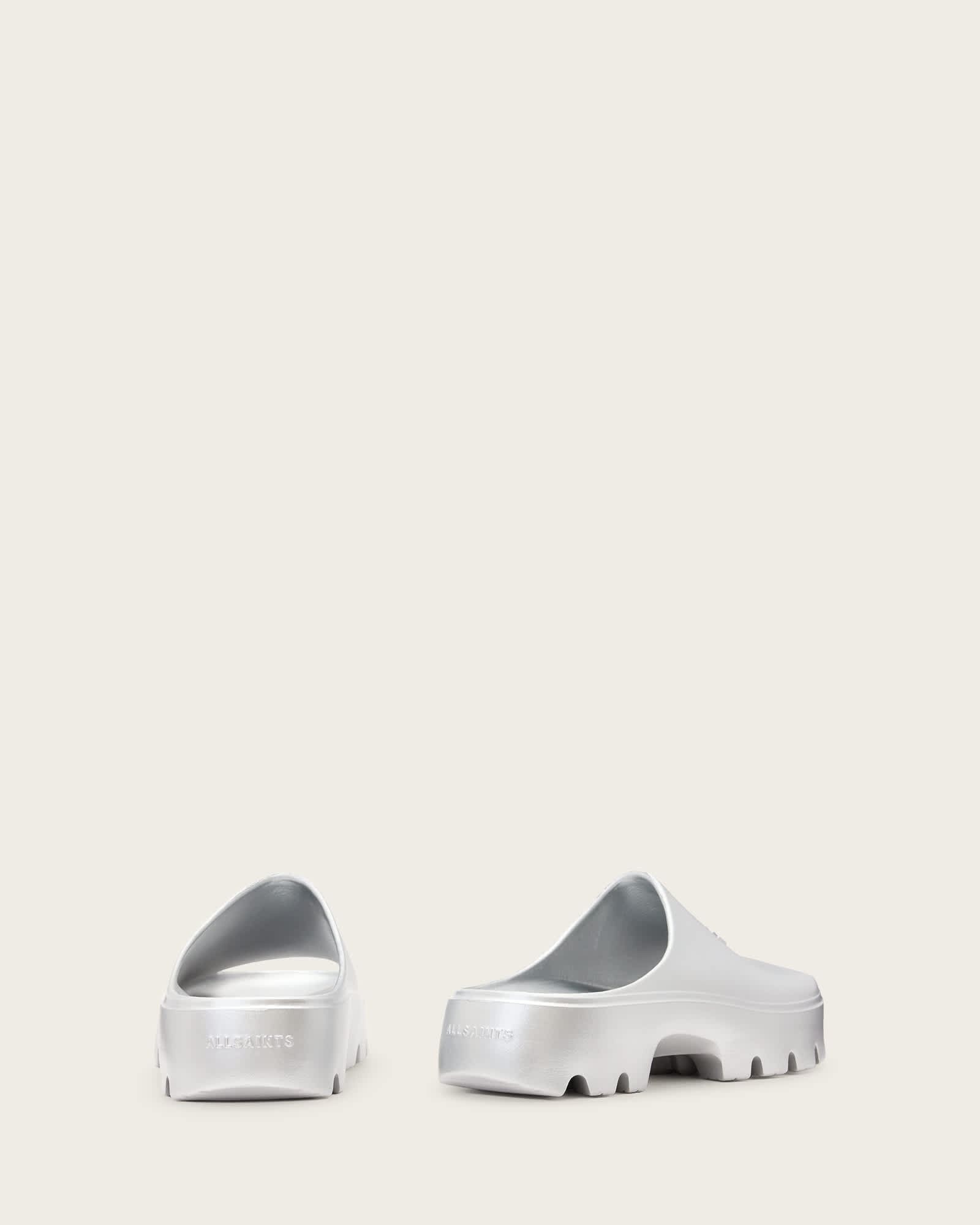 AllSaints Eclipse Flatform Logo Sliders,, Silver