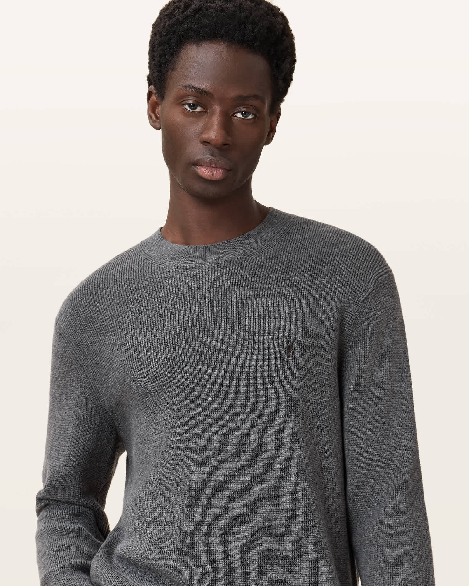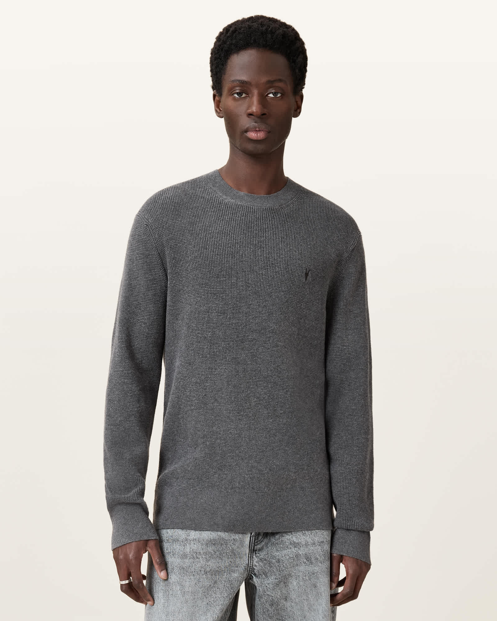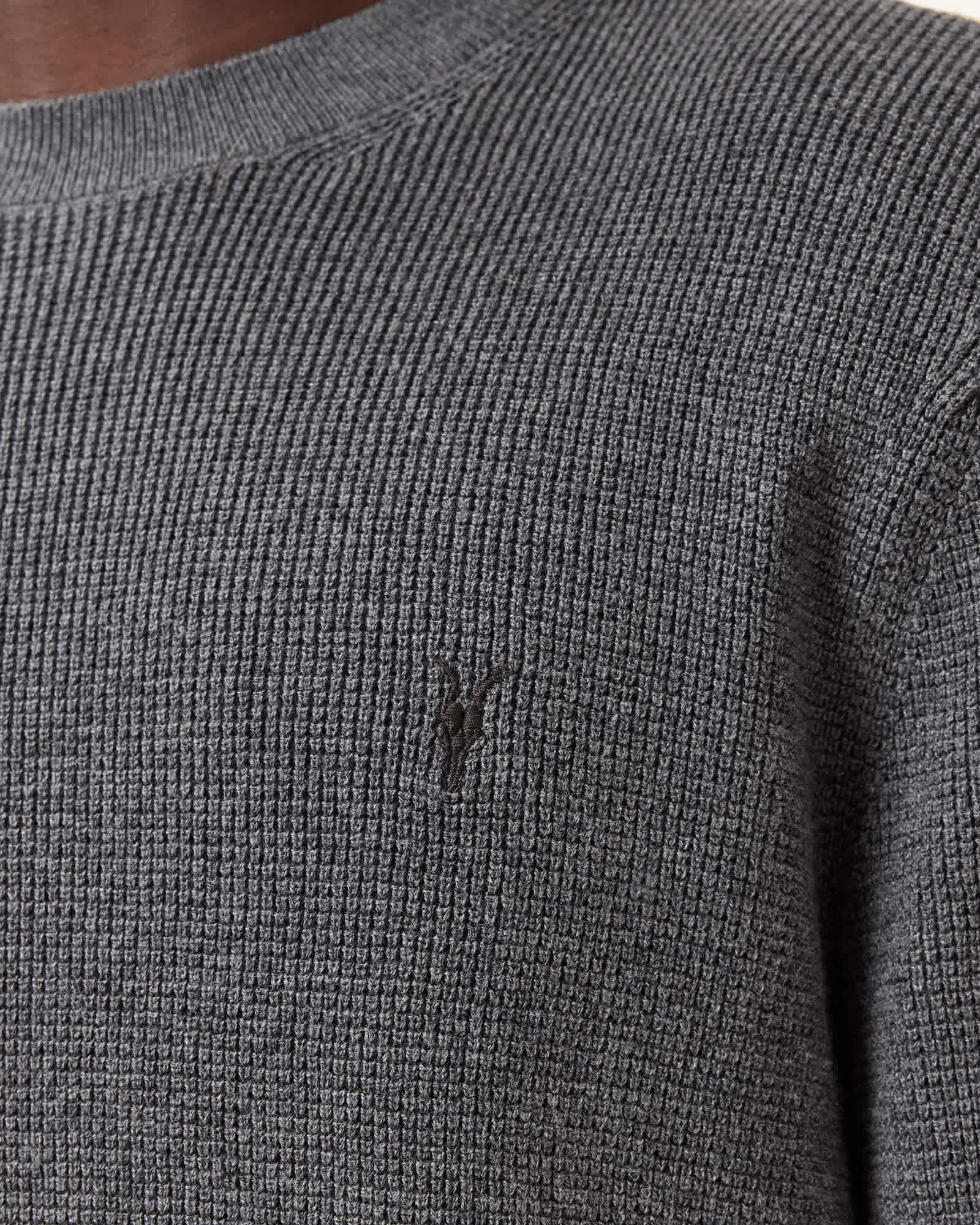AllSaints Aspen Waffle Texture Crew Neck Ramskull Jumper,, Monument Grey | ricciano CANADA