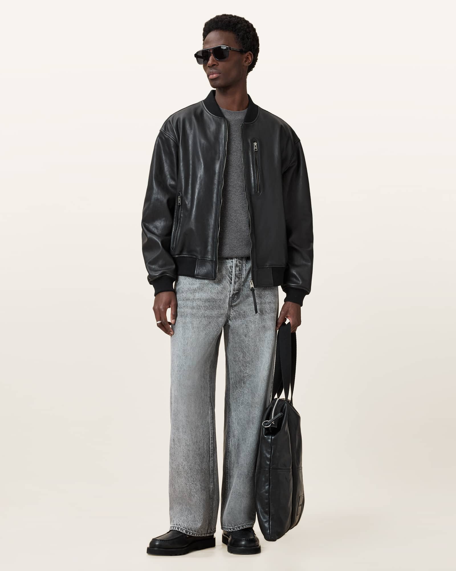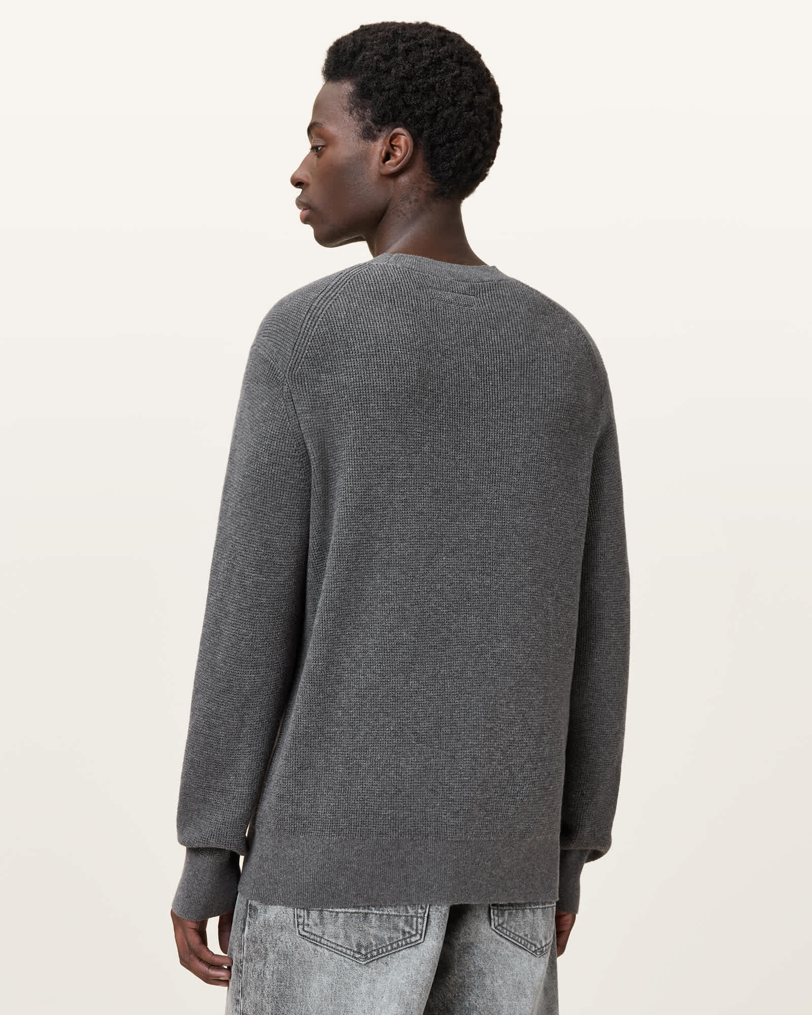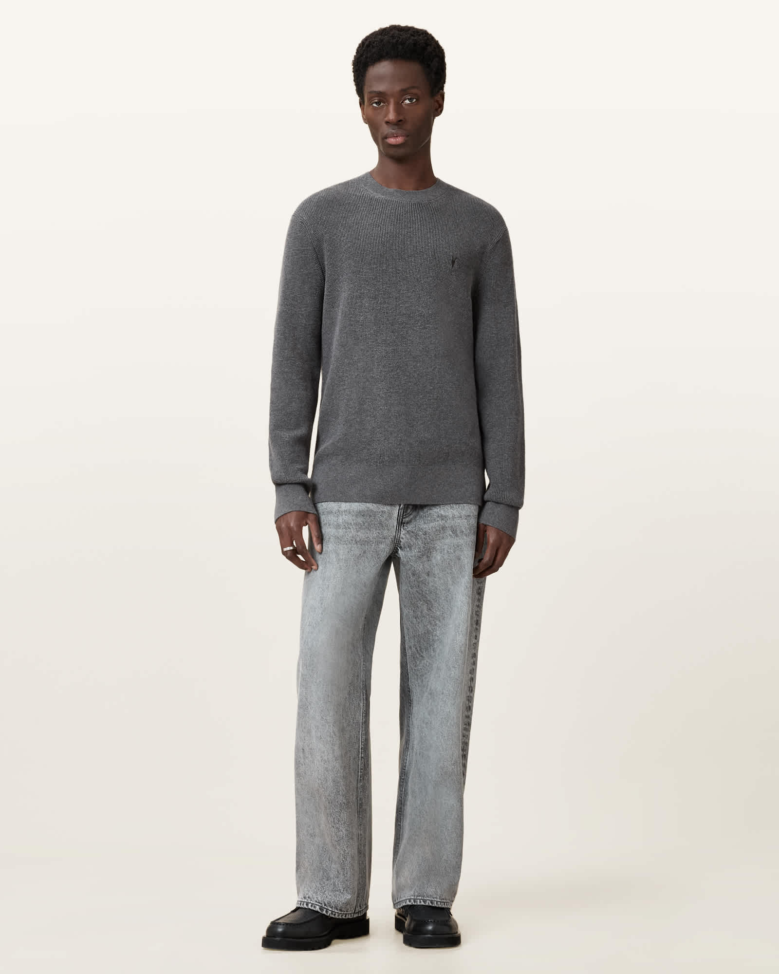 AllSaints Aspen Waffle Texture Crew Neck Ramskull Jumper,, Monument Grey | ricciano CANADA