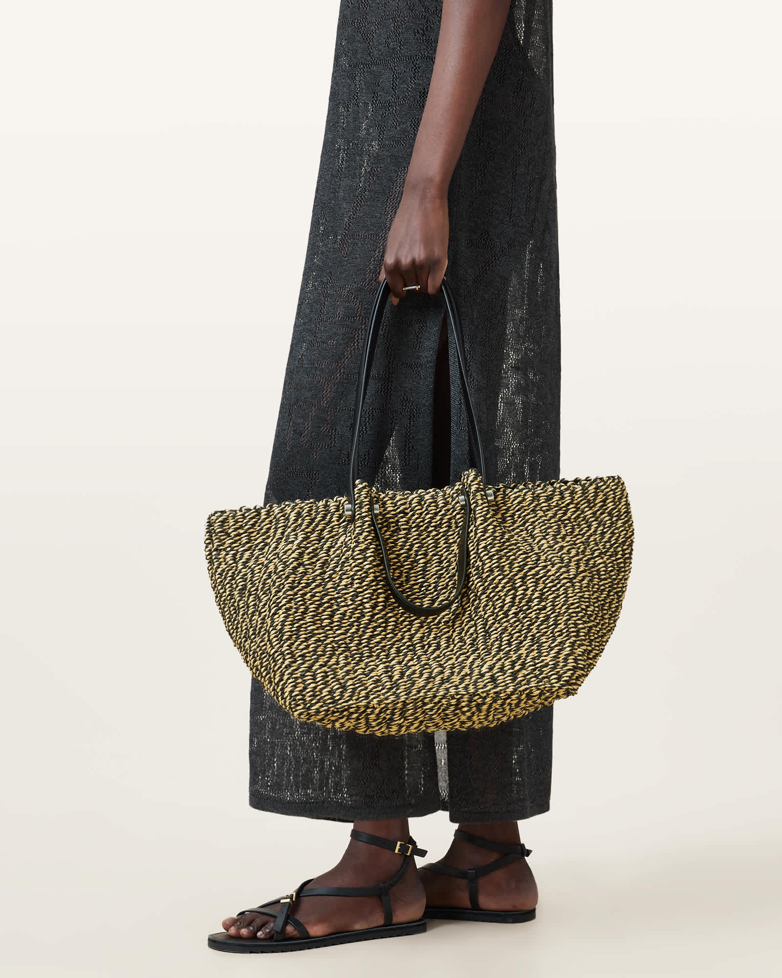 AllSaints Allington Straw Tote Bag,, Black/Natural | ricciano CANADA