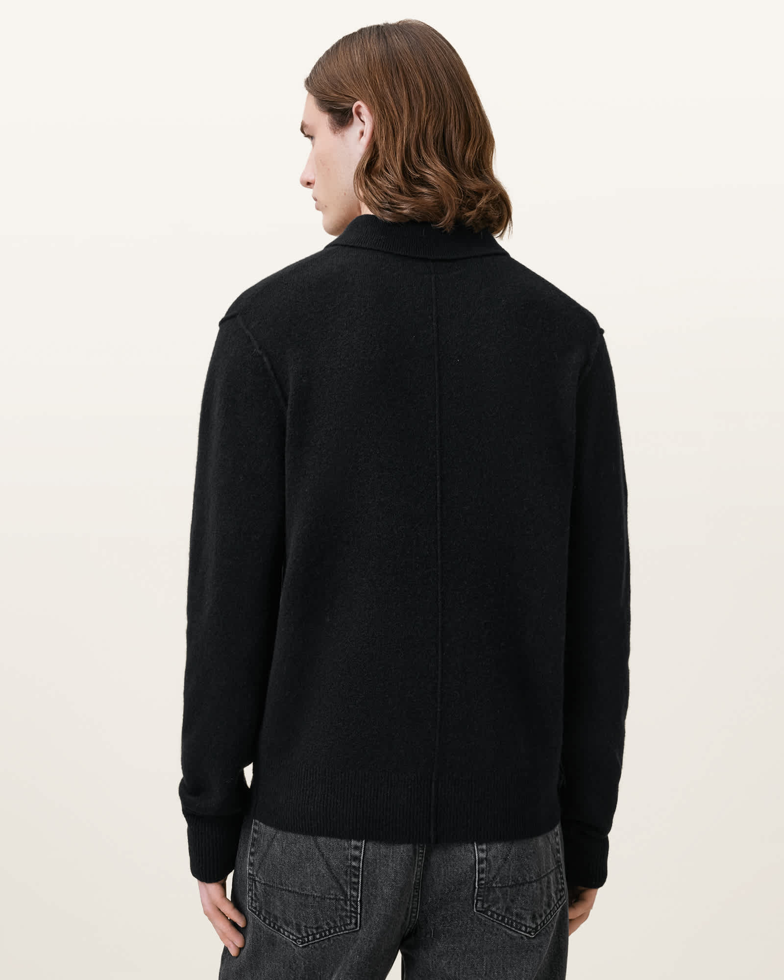 AllSaints Statten Long Sleeve Ramskull Polo Jumper,, Black
