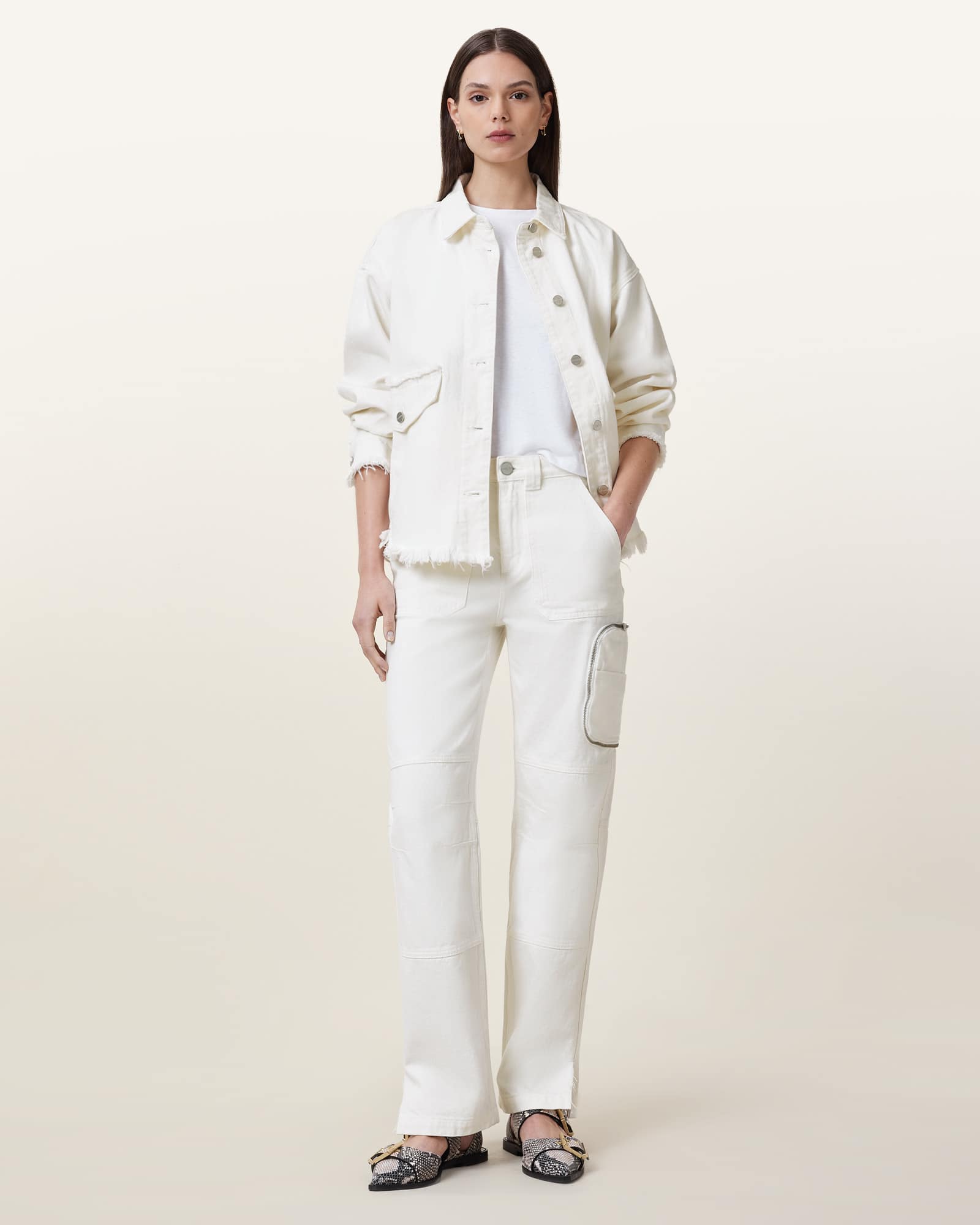 AllSaints Florence Straight Leg Cargo Jeans,, White