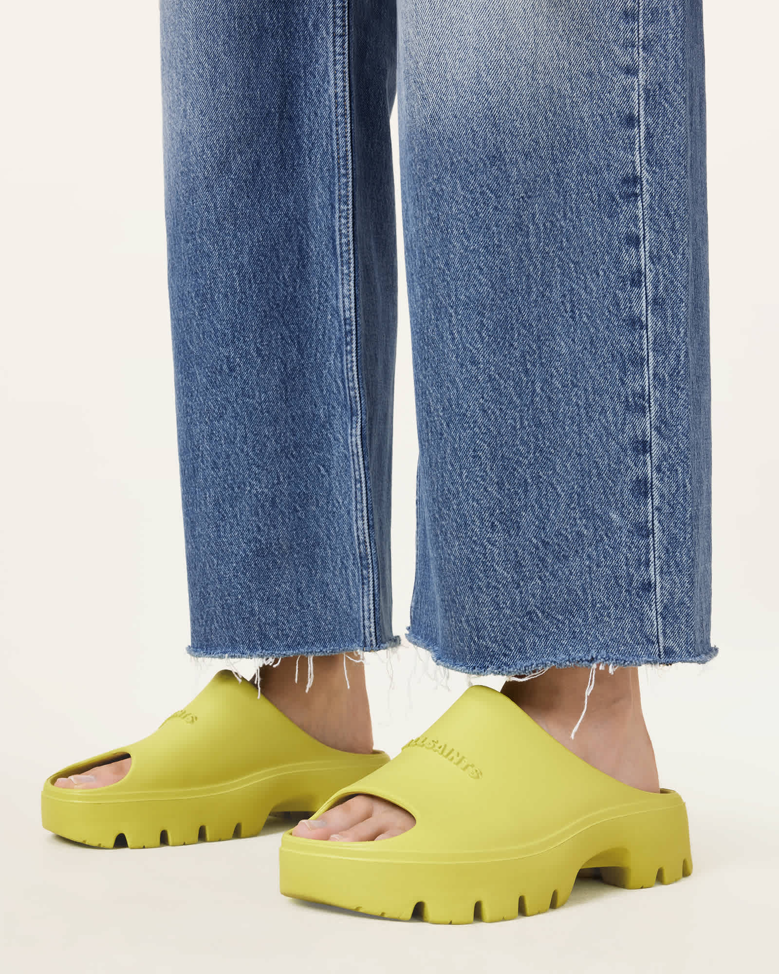 AllSaints Eclipse Flatform Logo Sliders,, Unity Green