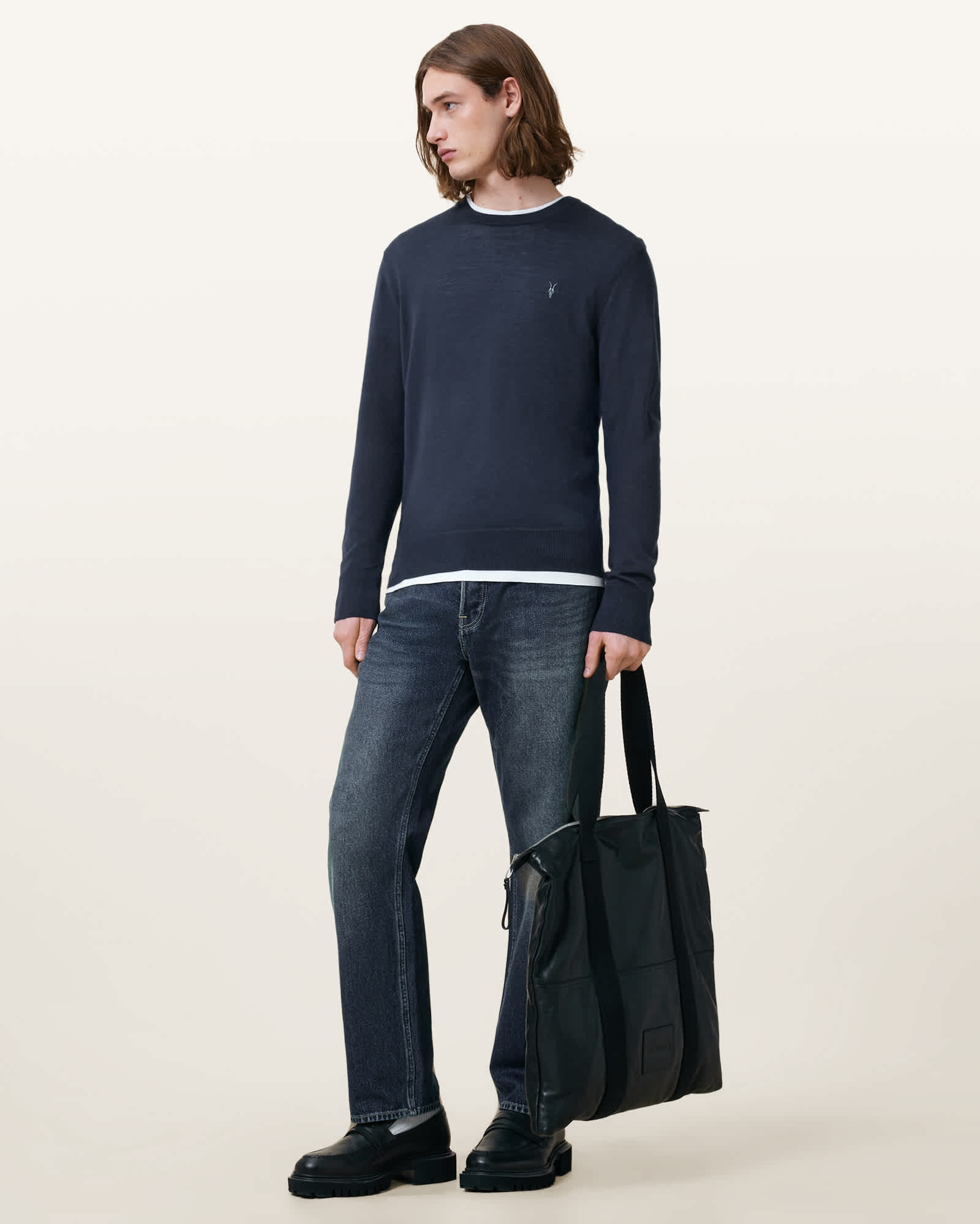 AllSaints Mode Merino Crew Neck Ramskull Jumper,, Navy Blue
