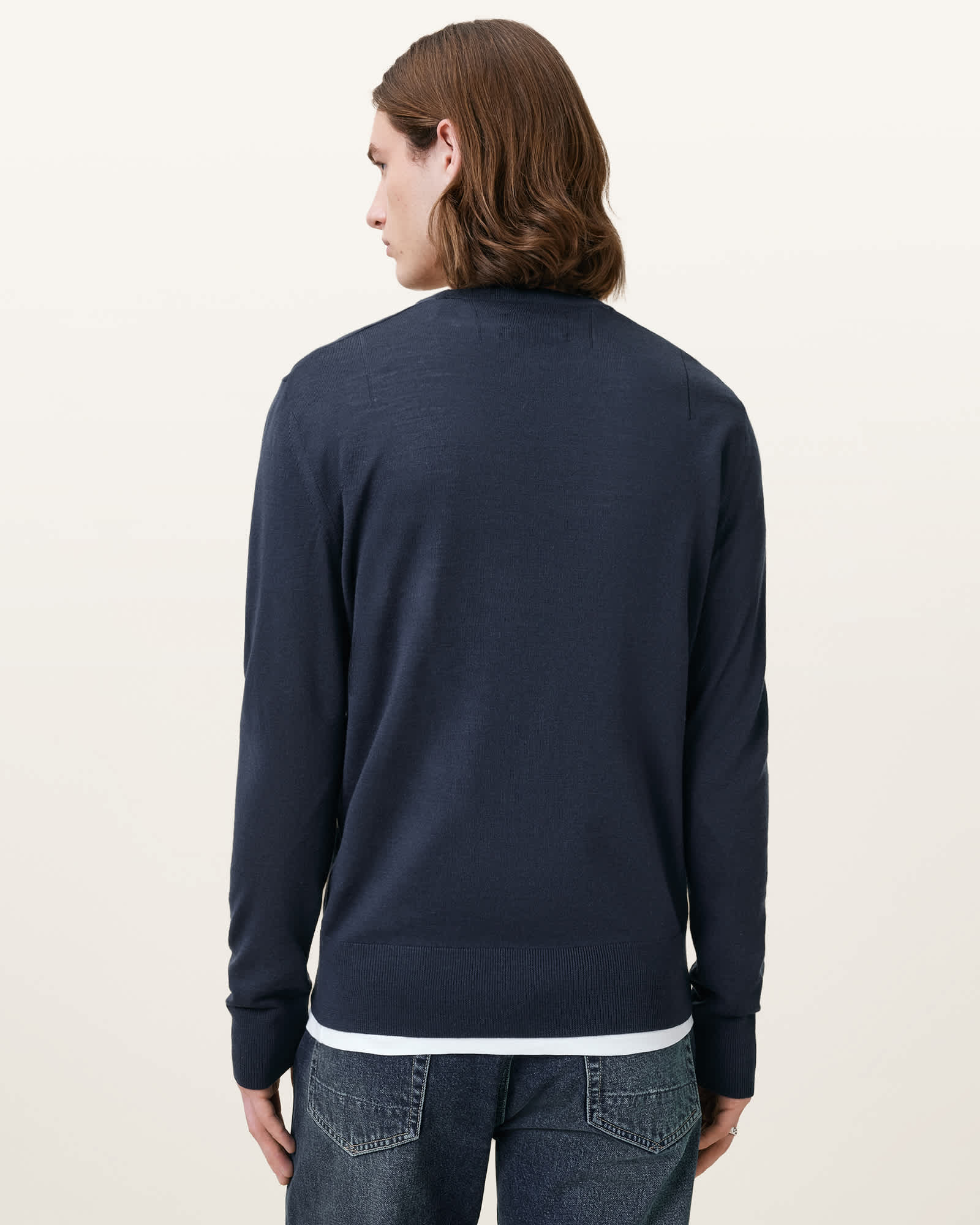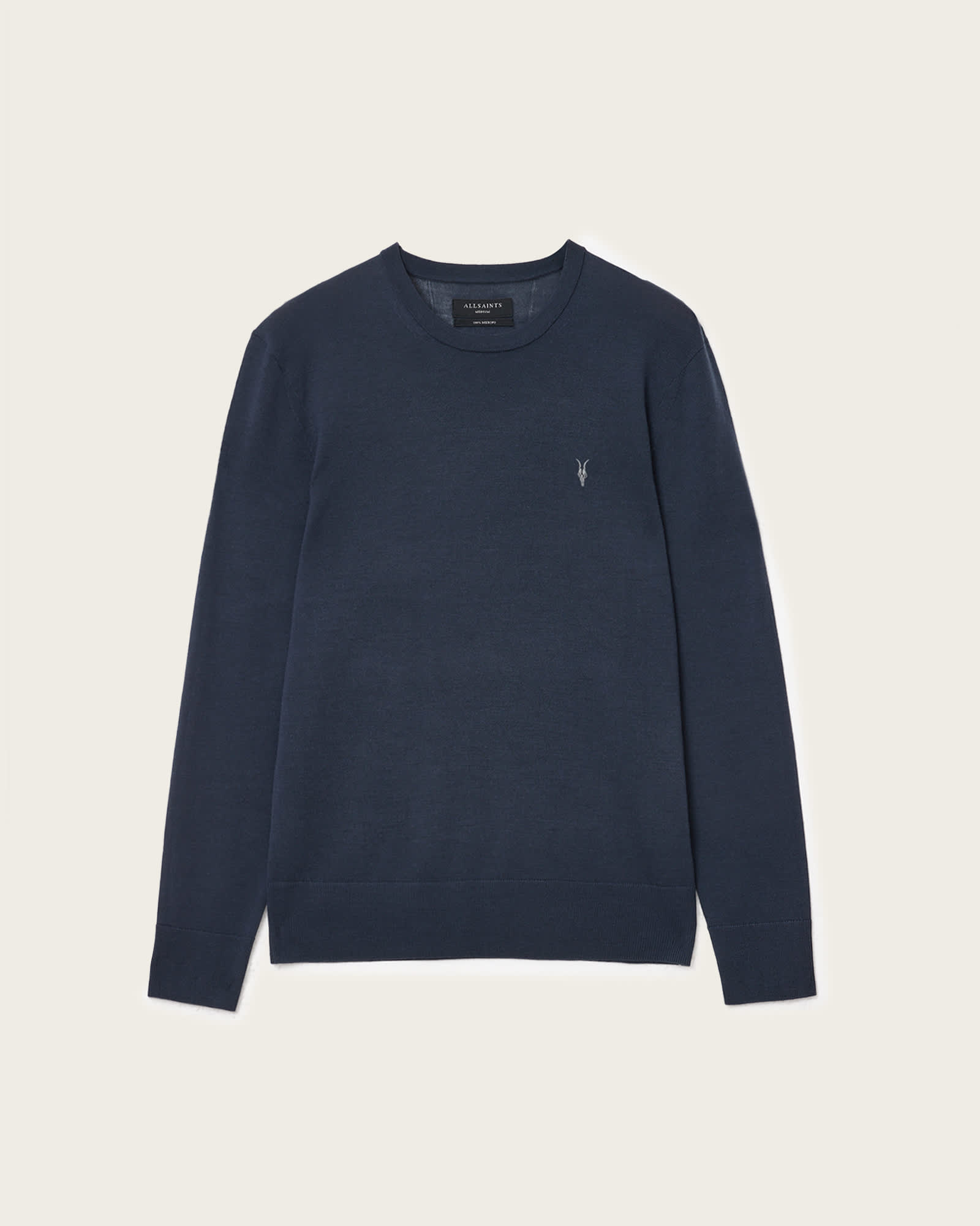 AllSaints Mode Merino Crew Neck Ramskull Jumper,, Navy Blue | ricciano CANADA