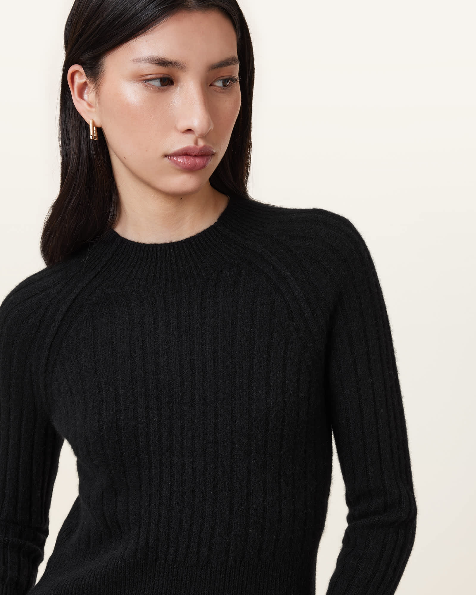 AllSaints Maya Ribbed Cashmere Jumper,, Black | ricciano CANADA