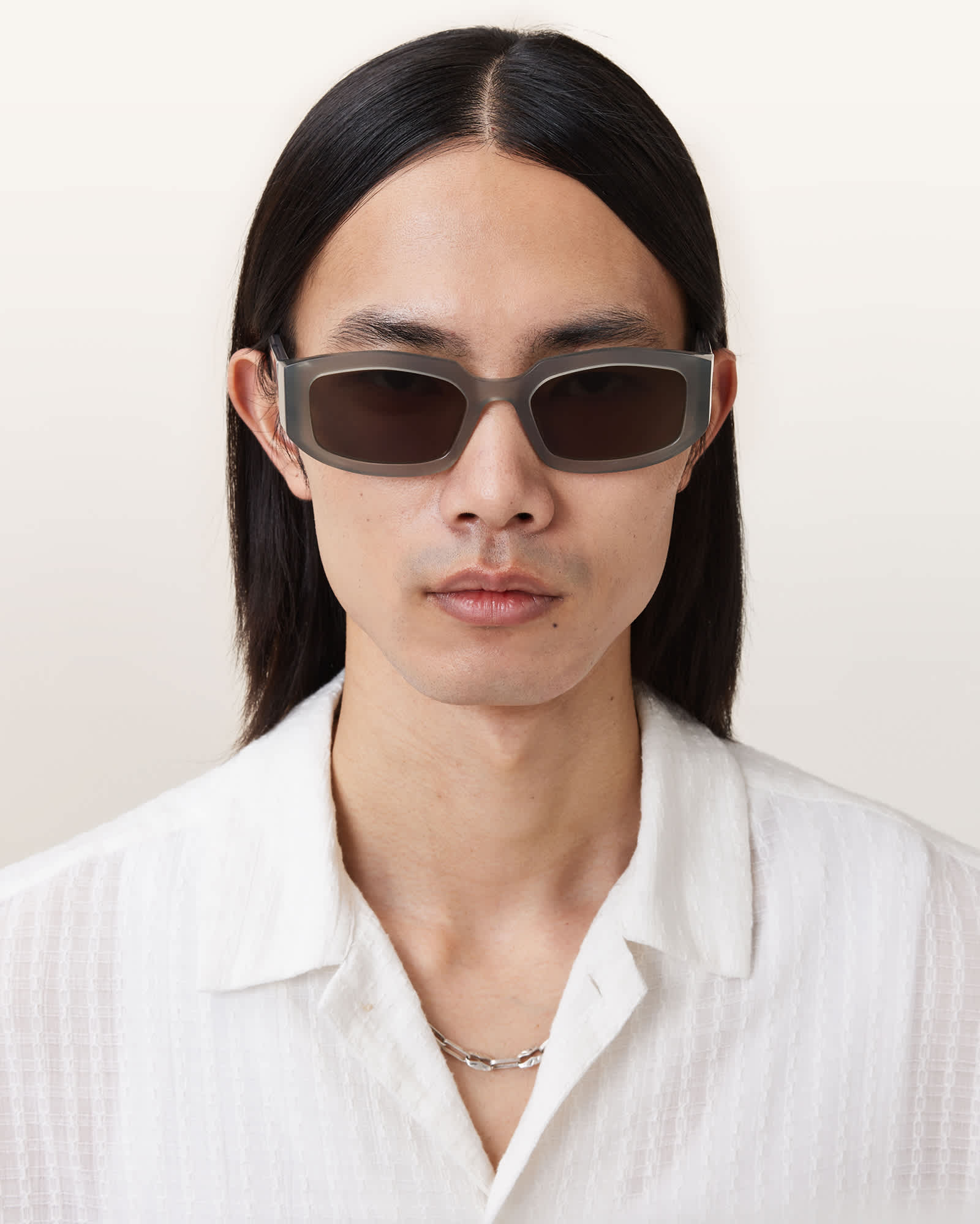 AllSaints Arlon Rectangle Frame Sunglasses,, Grey Khaki/Silver | ricciano CANADA