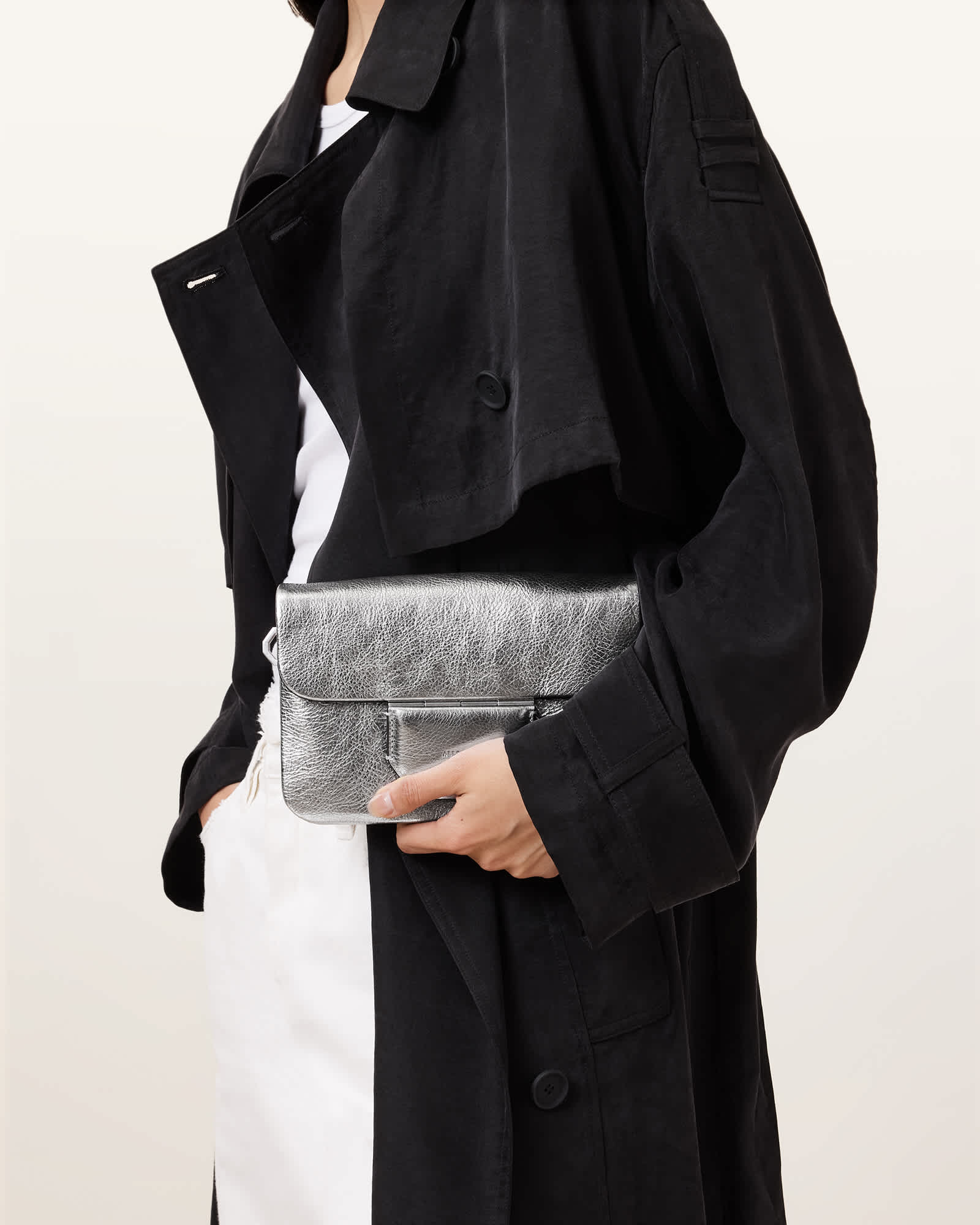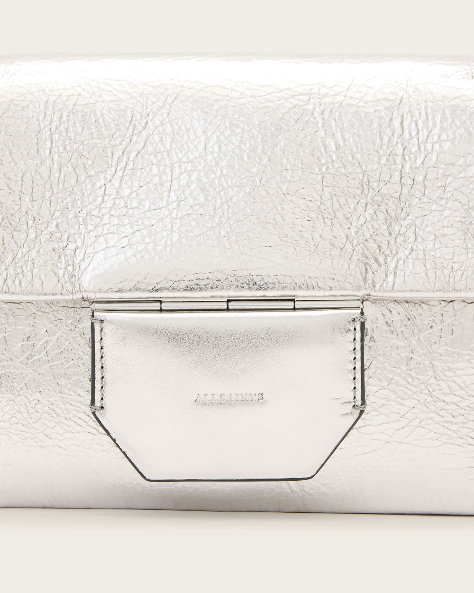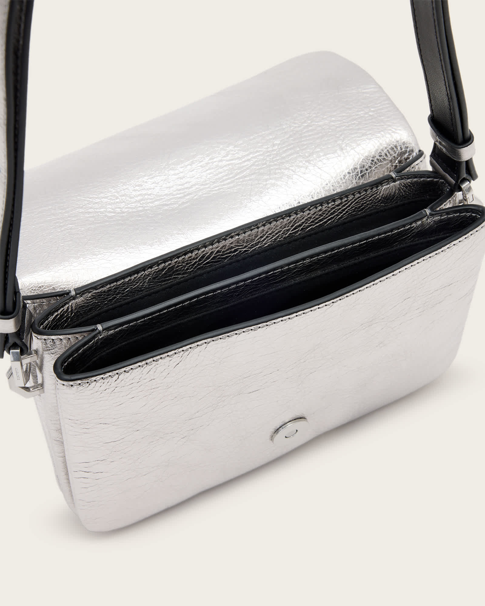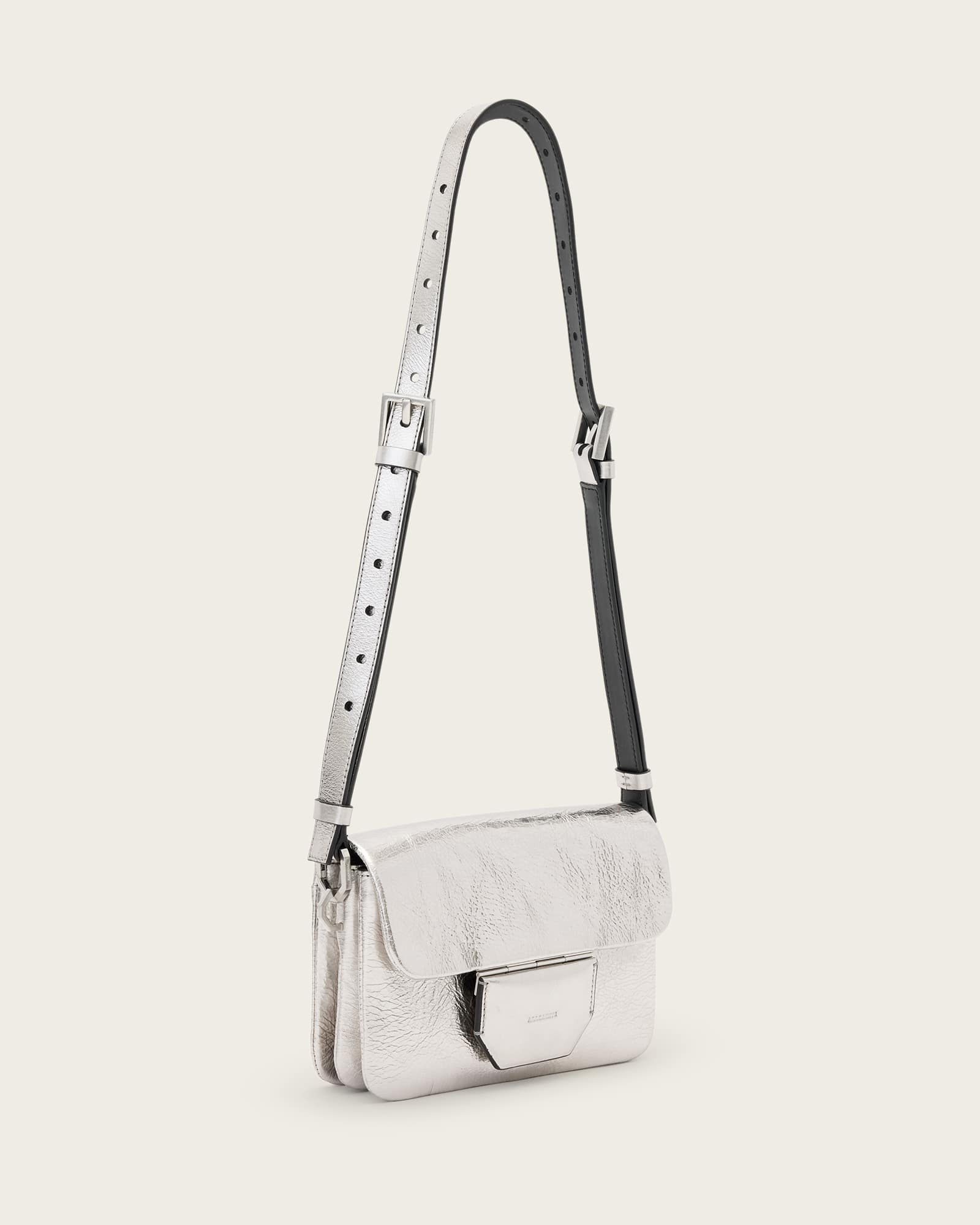 AllSaints Jupiter Metallic Leather Crossbody Bag,, Silver | ricciano CANADA