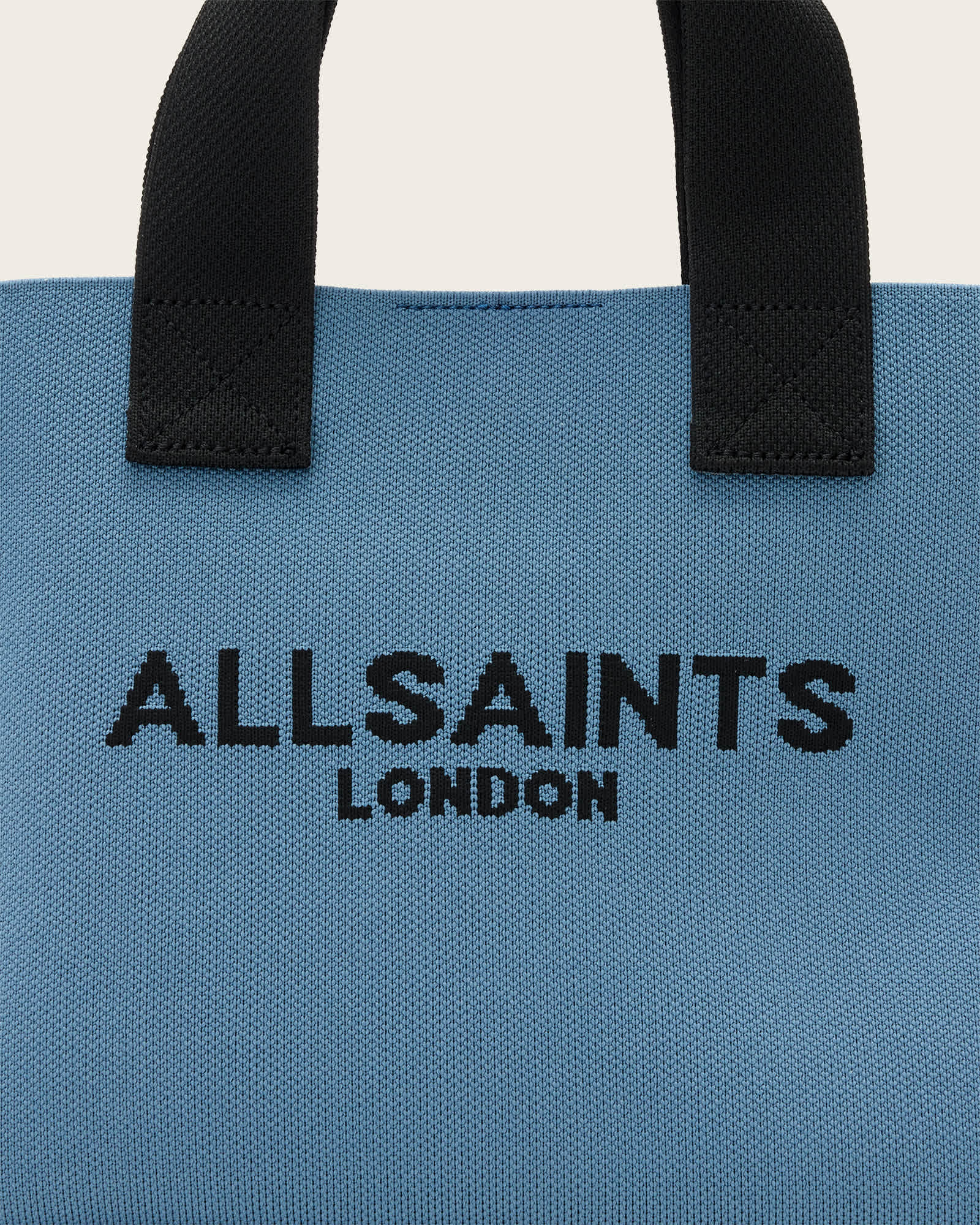 AllSaints Izzy Logo Print Knitted Mini Tote Bag,, Steel Blue | ricciano CANADA