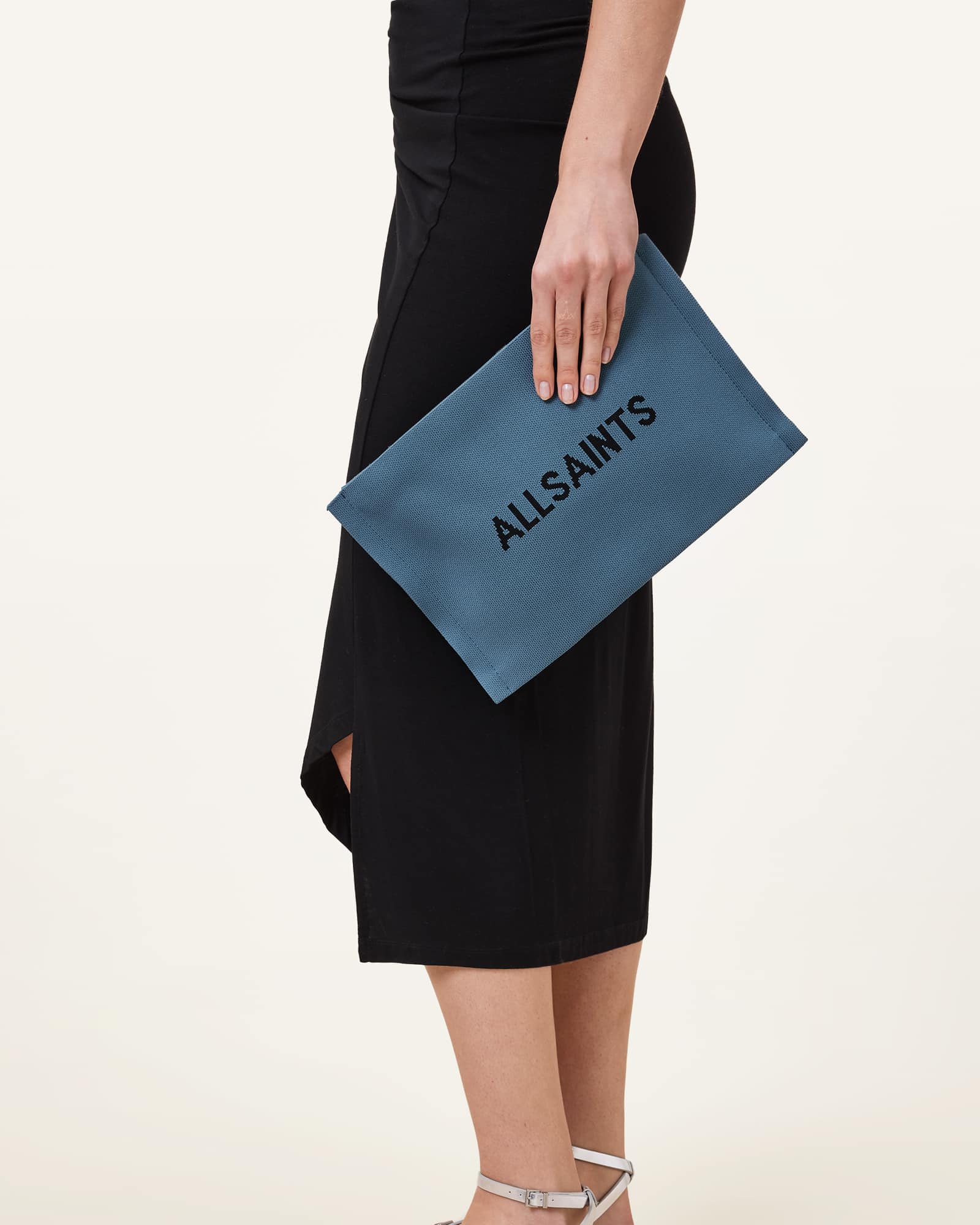 AllSaints Izzy Logo Knitted Clutch,, Steel Blue | ricciano CANADA