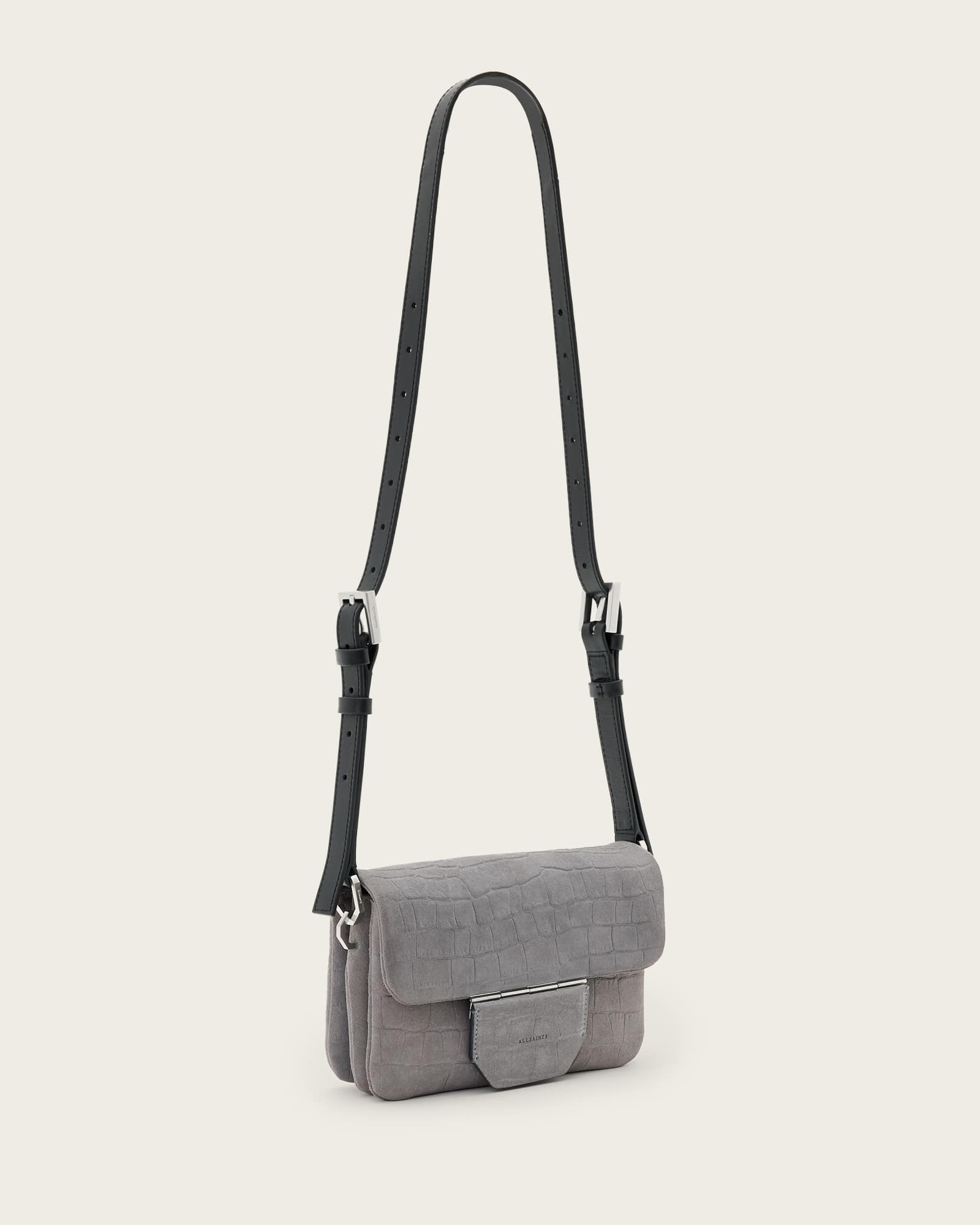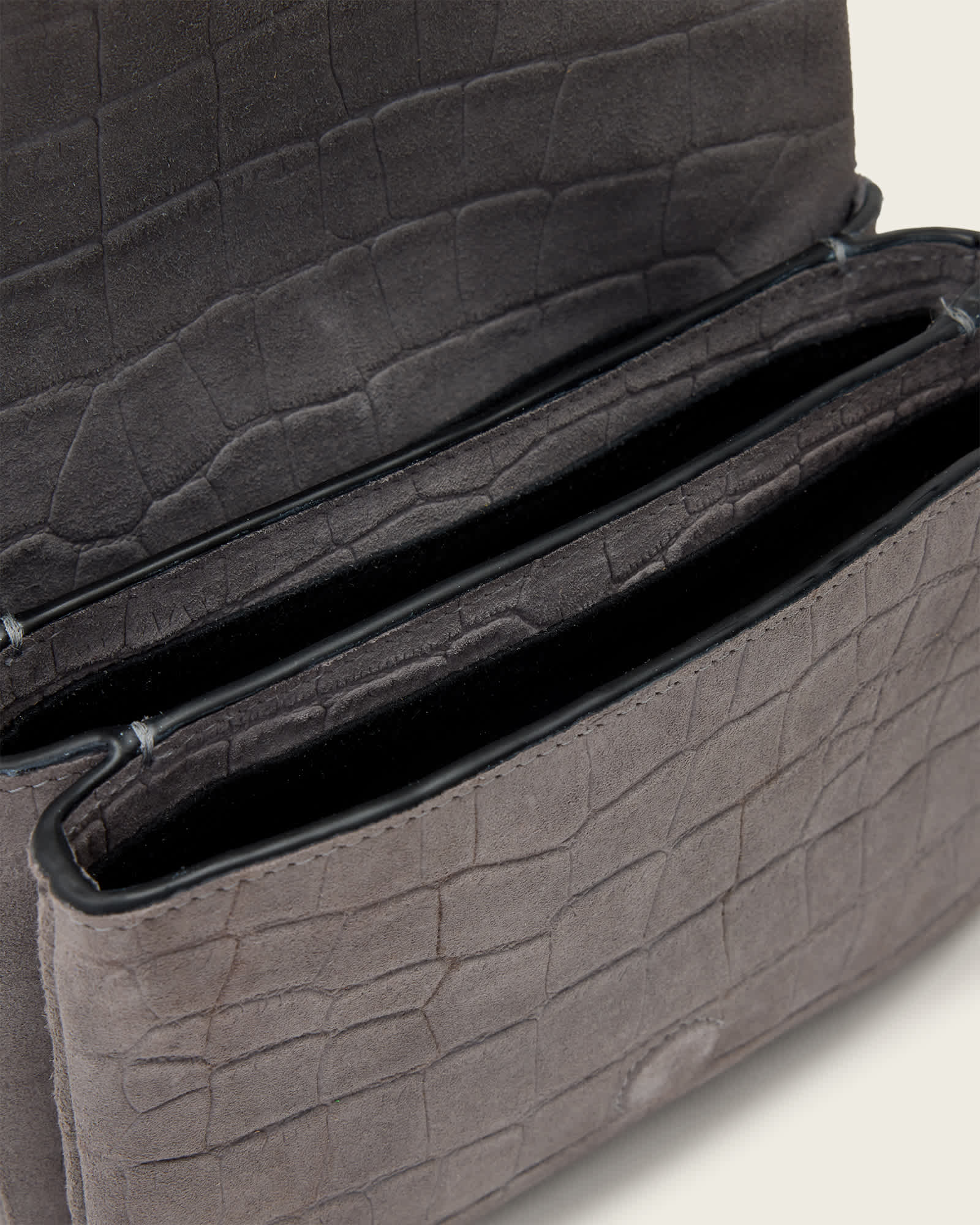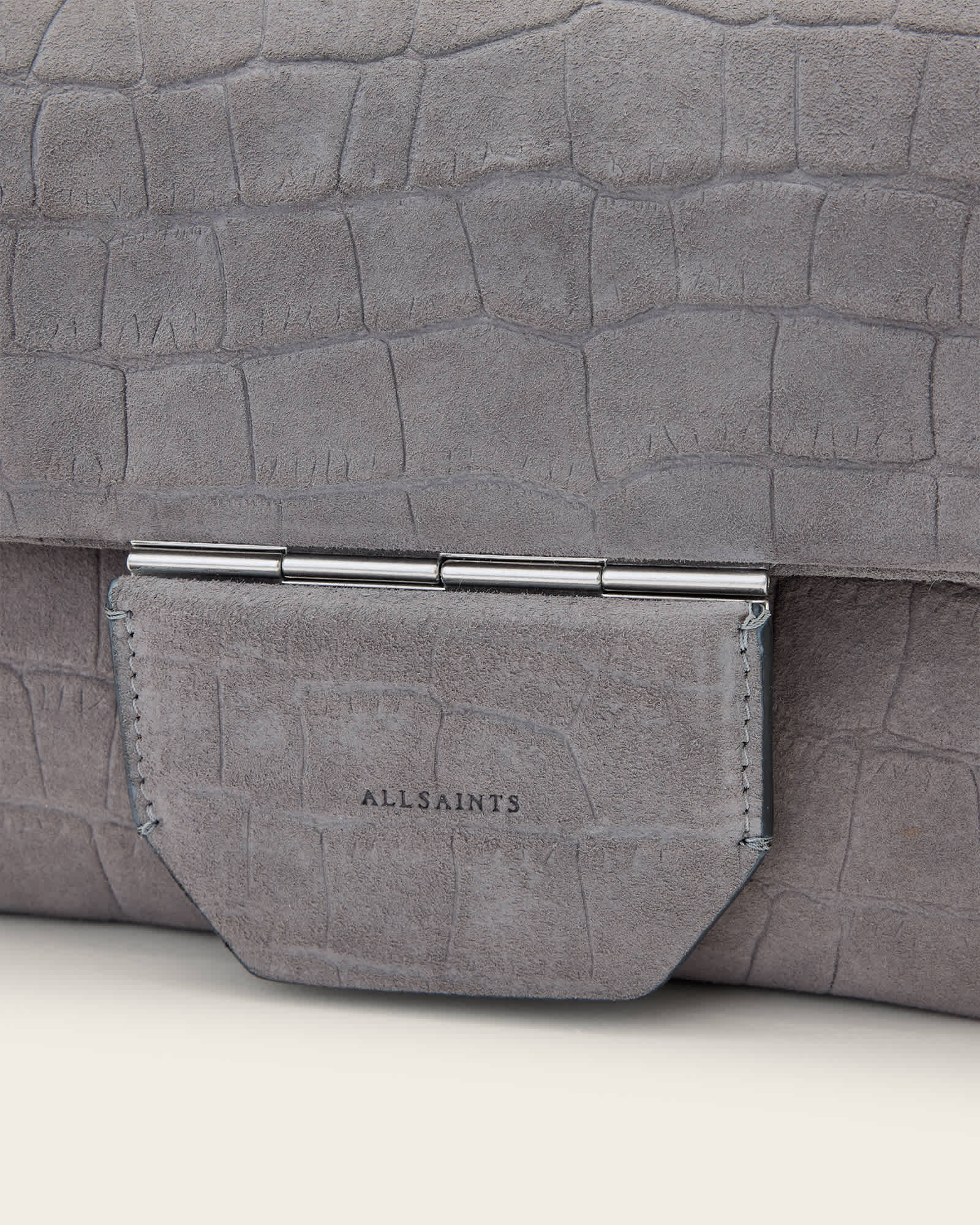 AllSaints Jupiter Croc-Effect Leather Crossbody Bag,, Slate Blue