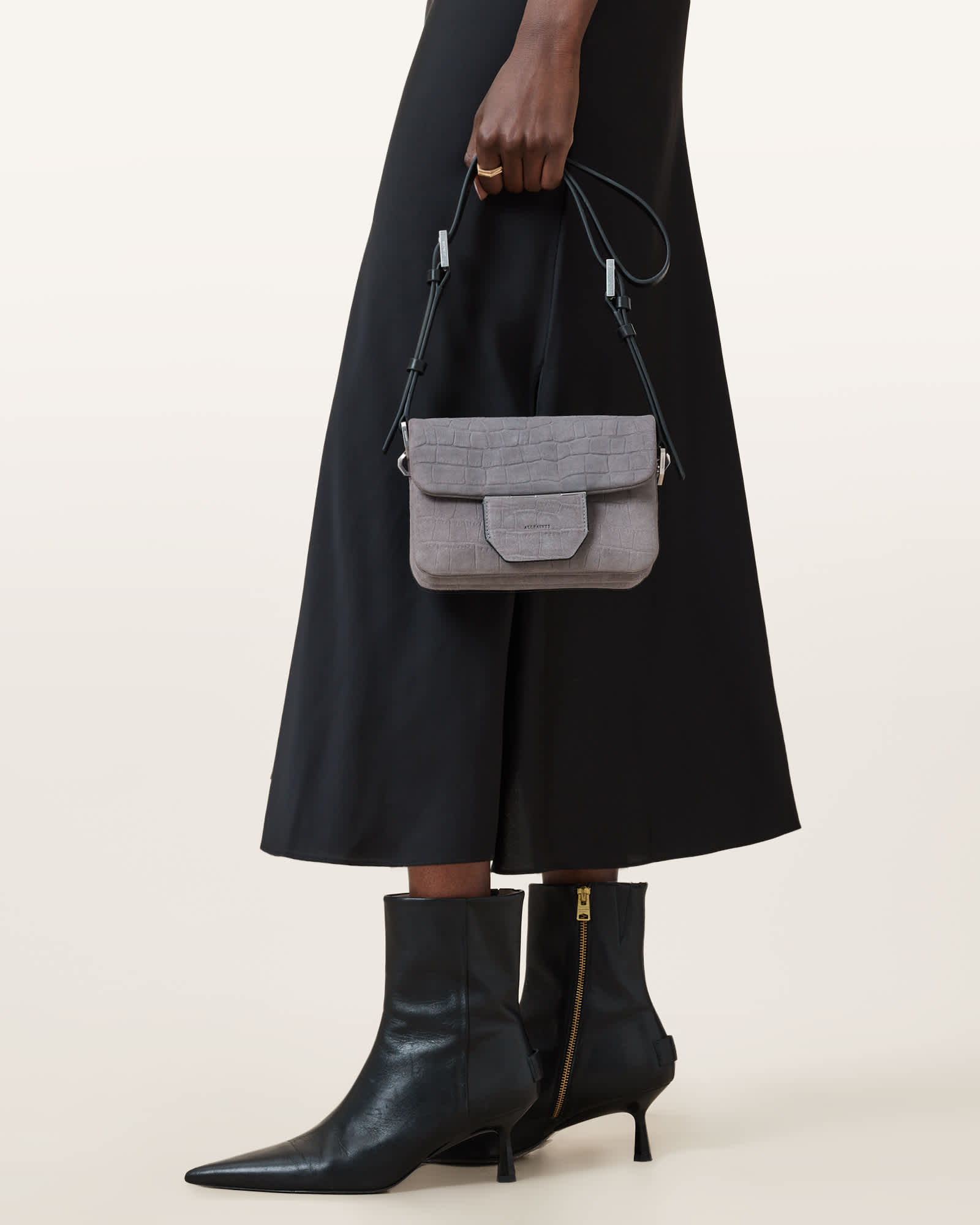 AllSaints Jupiter Croc-Effect Leather Crossbody Bag,, Slate Blue | ricciano CANADA