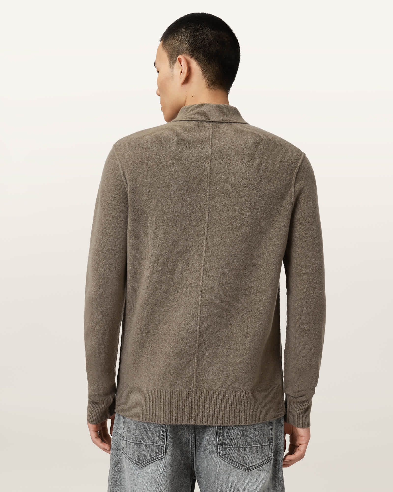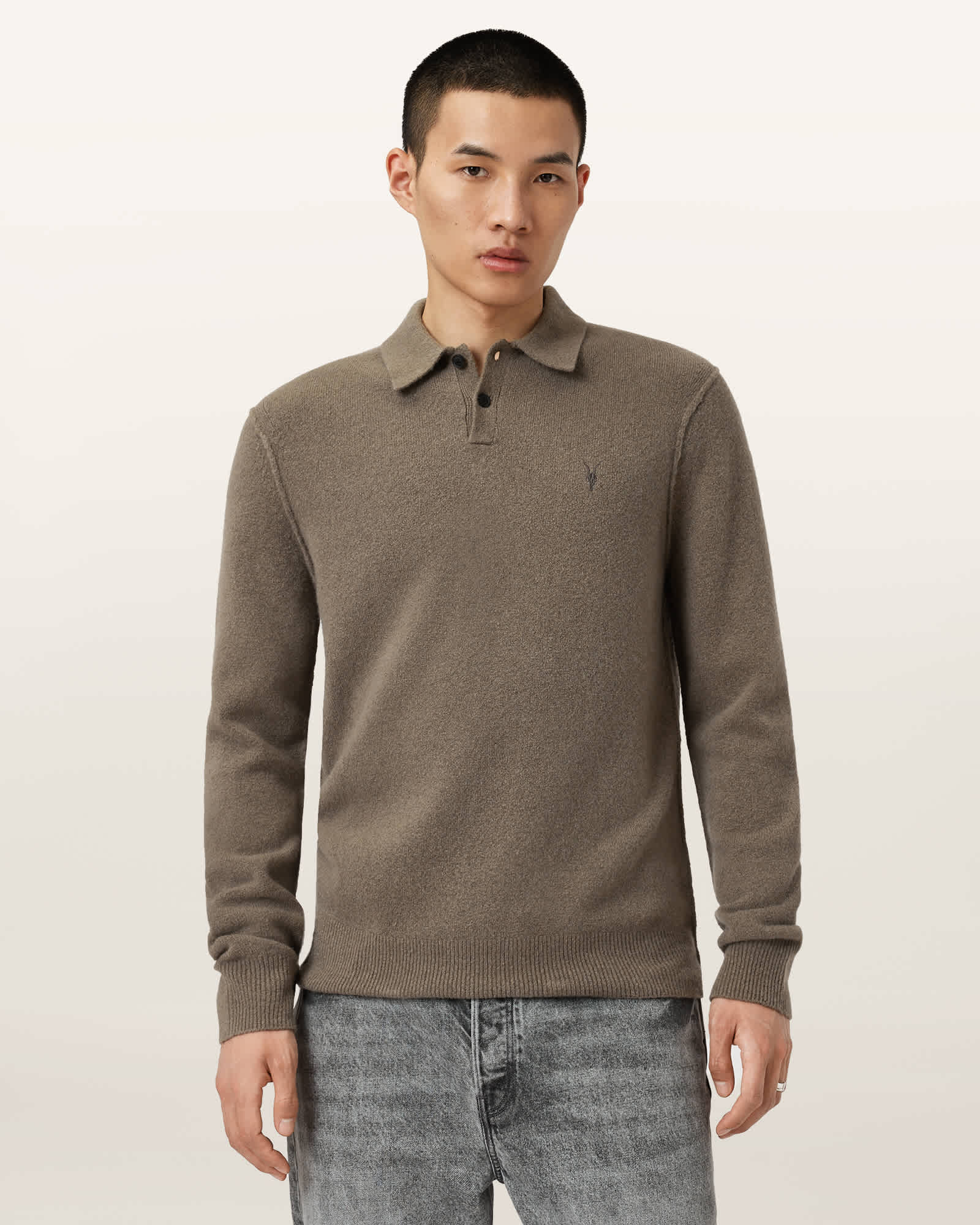 AllSaints Statten Long Sleeve Polo Jumper,, Dusky Green | ricciano CANADA