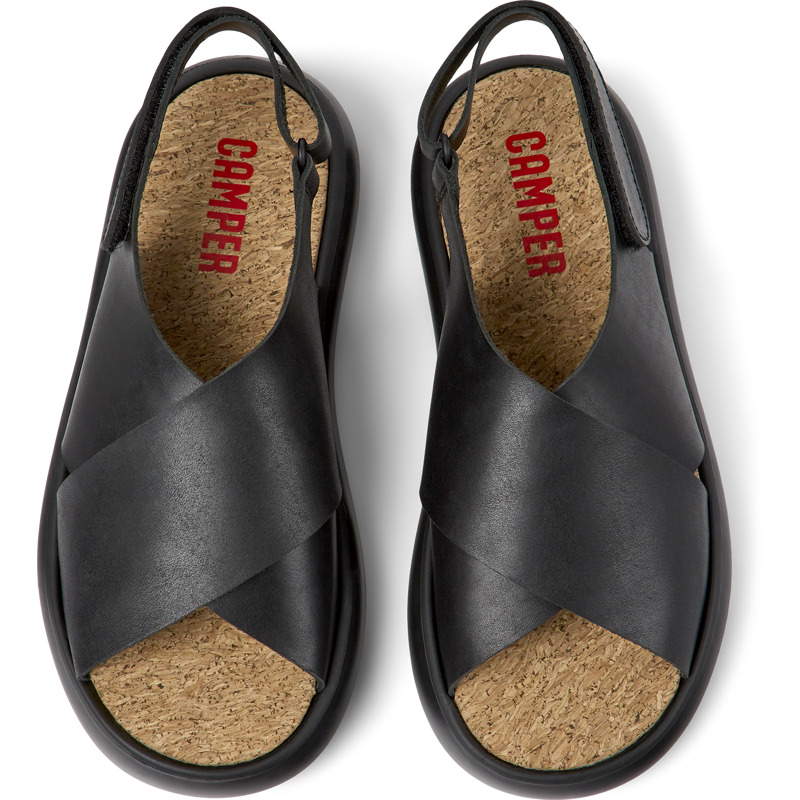 CAMPER - Black leather women's sandals with anatomic non-removable EVA footbeds and XL EXTRALIGHT® Organix™ 3.0 outsoles (30% bio-circular compounds).