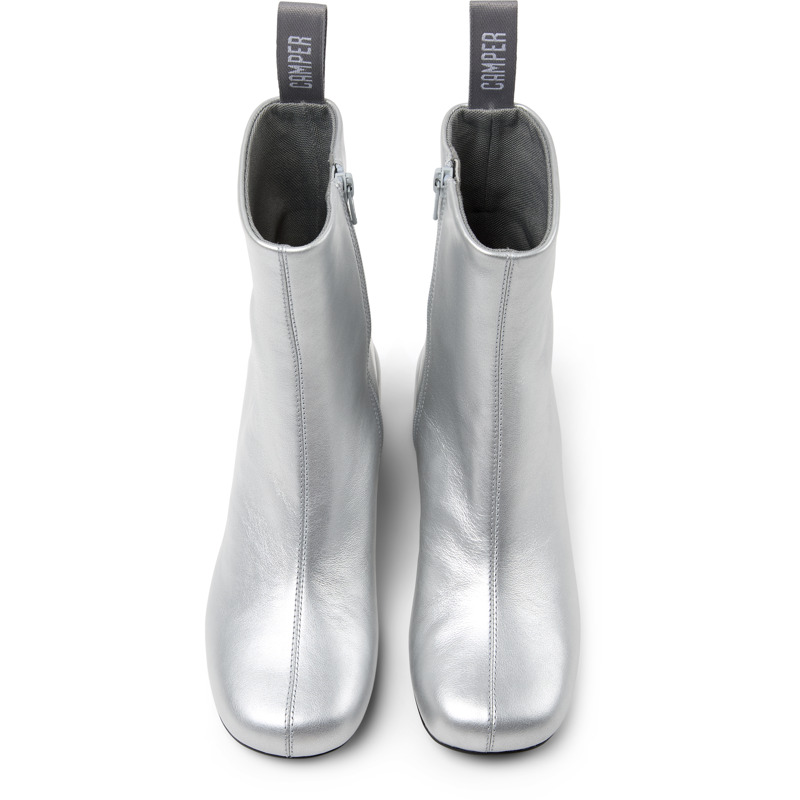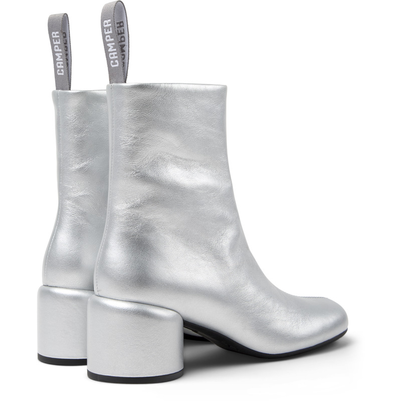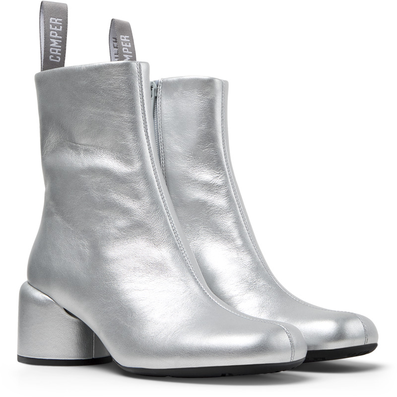 CAMPER - Silver leather women's ankle boots with OrthoLite® Recycled™ footbeds and ABS & TPU outsoles.