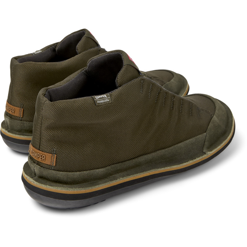 CAMPER - Men's green textile and nubuck ankle boots with PrimaLoft® membrane, elastic laces, and XL EXTRALIGHT® EVA outsoles (51% recycled).