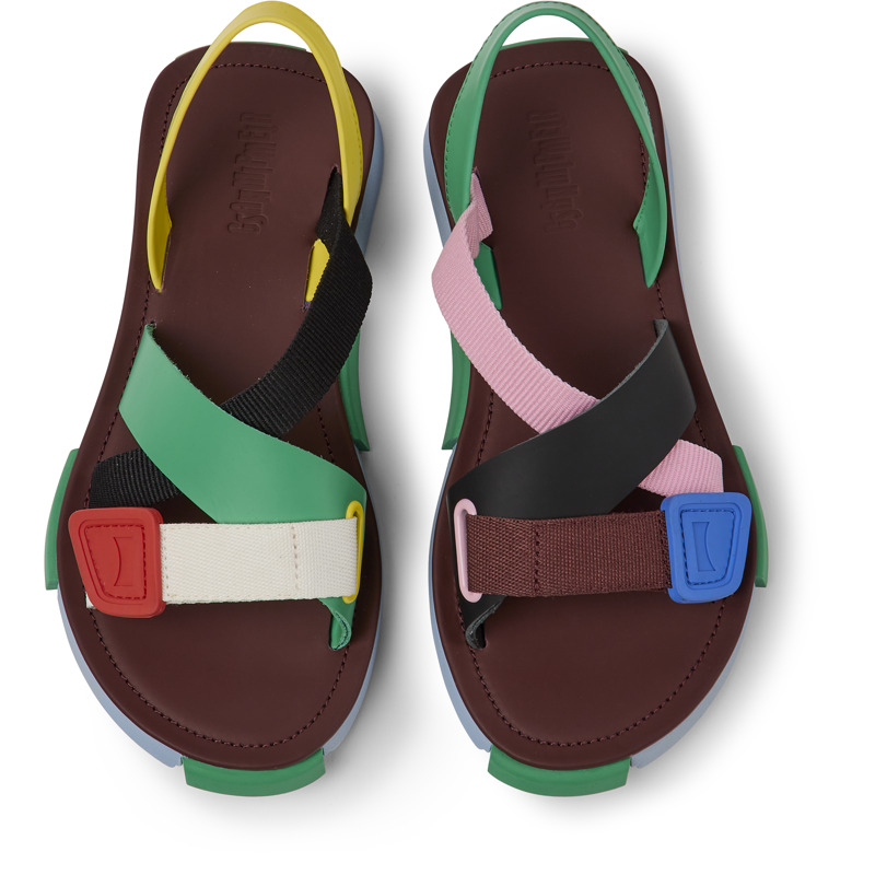 CAMPER - Multicolored leather and recycled PET webbing women's sandals with EVA and rubber outsoles (20% recycled) and a hook-and-loop closing system.