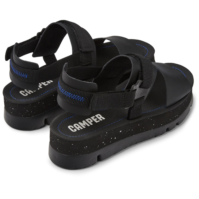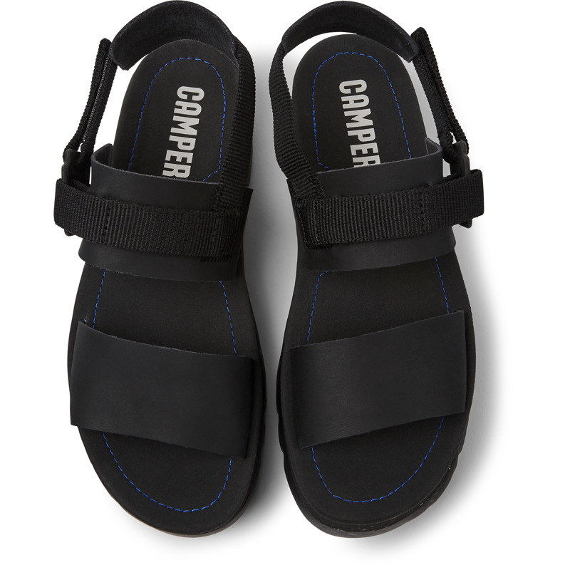 CAMPER - Black leather and recycled PET webbing women's sandals with 100% EVA midsoles (20% recycled), XL EXTRALIGHT® outsoles (51% recycled), and a hook-and-loop closing system.