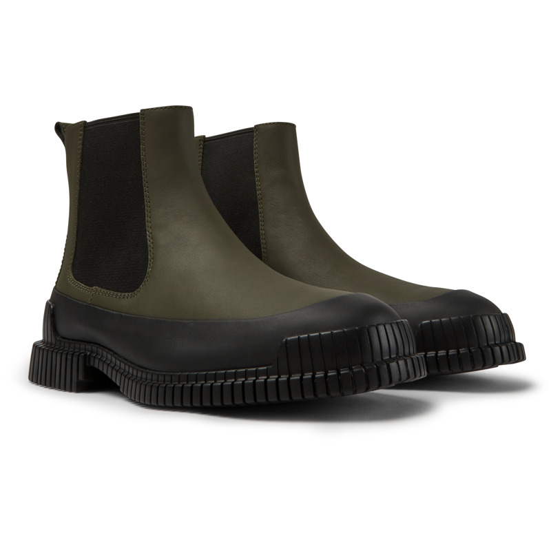 CAMPER - Green leather men's Chelsea booties with cushioning recycled OrthoLite® footbeds and XL EXTRALIGHT® EVA outsoles.
