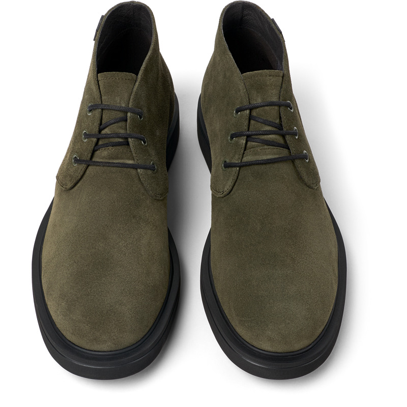 CAMPER - Green nubuck men's ankle boots with XL EXTRALIGHT® EVA outsoles.
