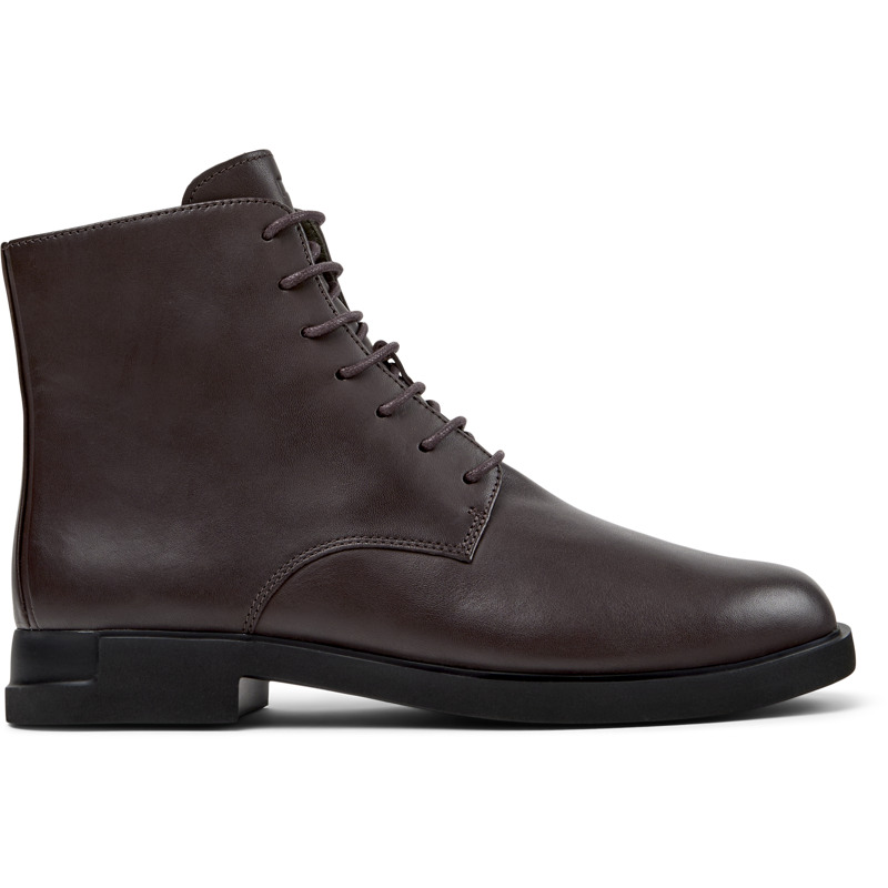 CAMPER - Burgundy leather women's lace-up boots with OrthoLite® Recycled™ footbeds, and XL EXTRALIGHT® outsoles.
