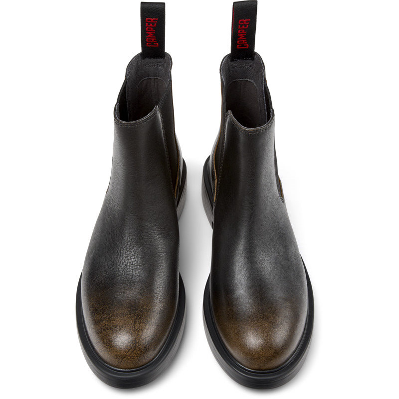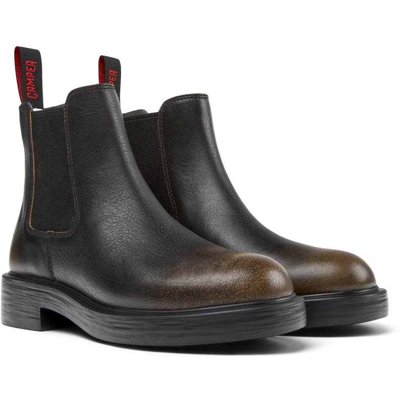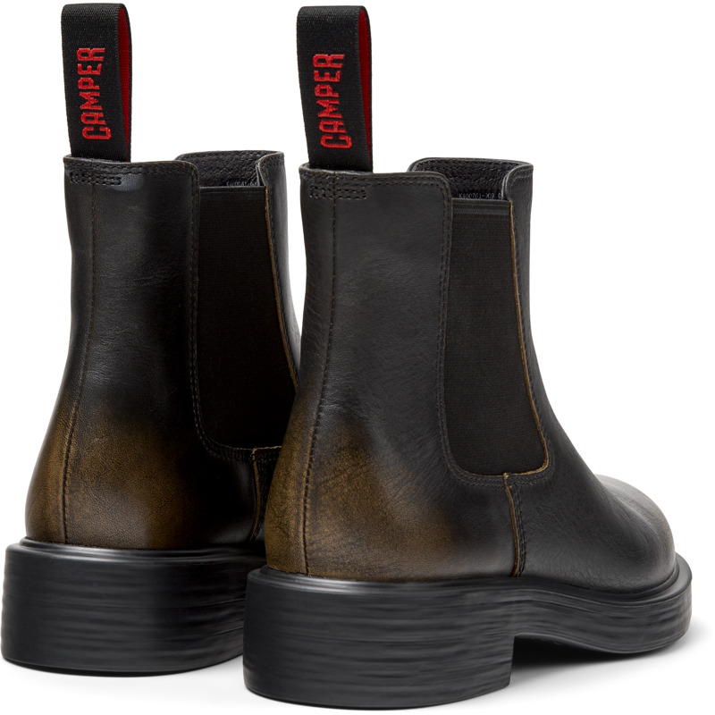 CAMPER - Black and brown calfskin leather ankle boots for women with OrthoLite® Recycled™ footbeds and XL EXTRALIGHT® EVA outsoles.