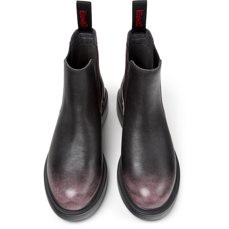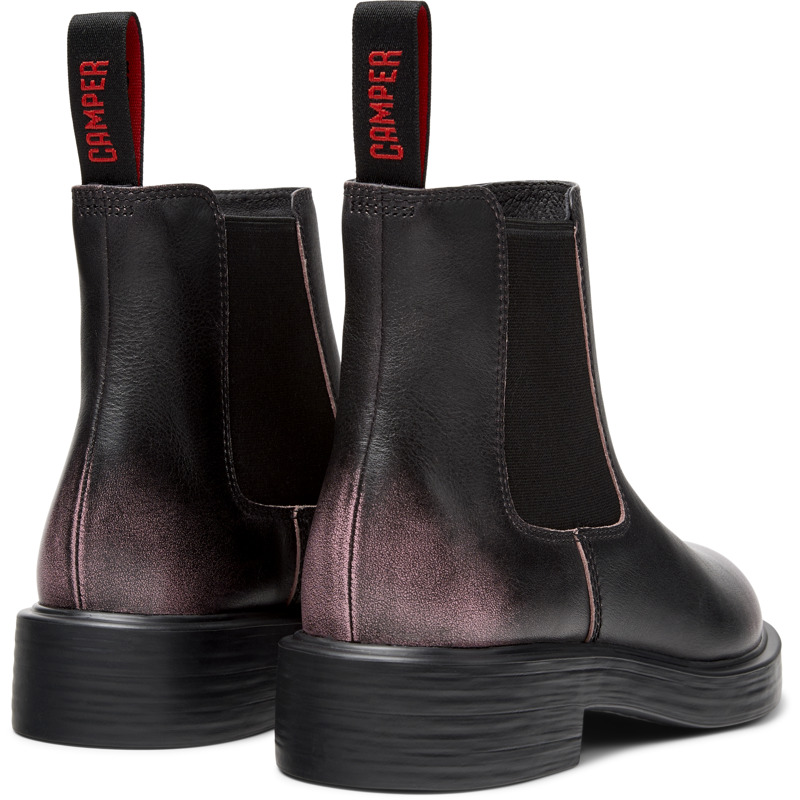 CAMPER - Black and pink calfskin leather ankle boots for women with OrthoLite® Recycled™ footbeds and XL EXTRALIGHT® EVA outsoles.