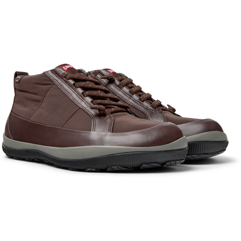 CAMPER - Brown calfskin leather and textile men's ankle boots with PrimaLoft® membrane, OrthoLite® Recycled™ footbeds, elastic laces, EVA midsole and rubber outsoles.