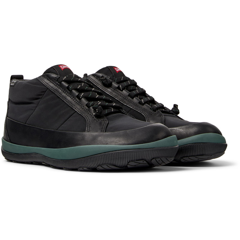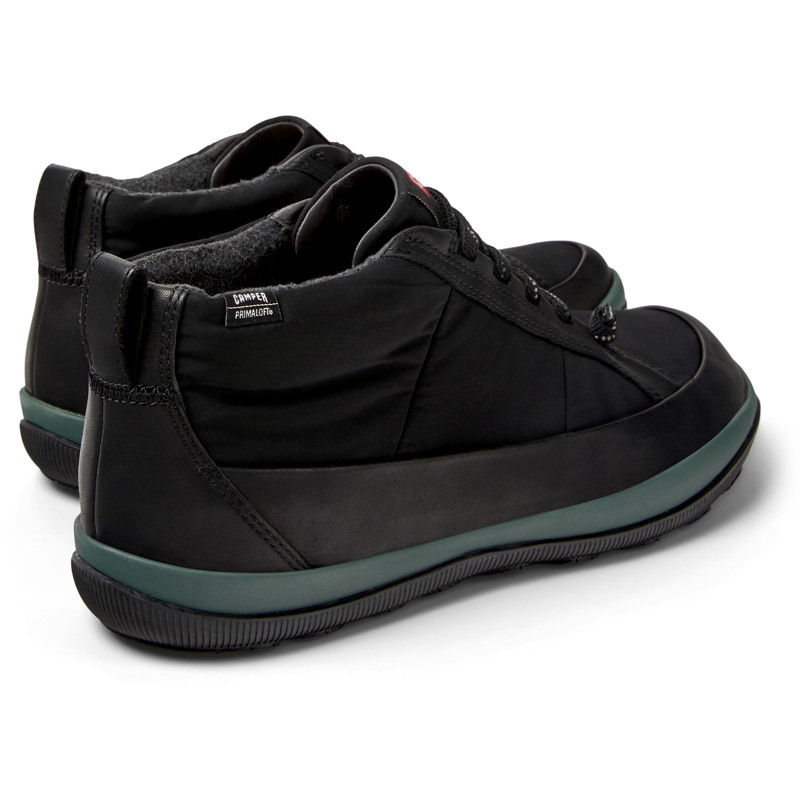 CAMPER - Black calfskin leather and textile men's ankle boots with PrimaLoft® membrane, OrthoLite® Recycled™ footbeds, elastic laces, EVA midsole, and rubber outsoles (27% natural).