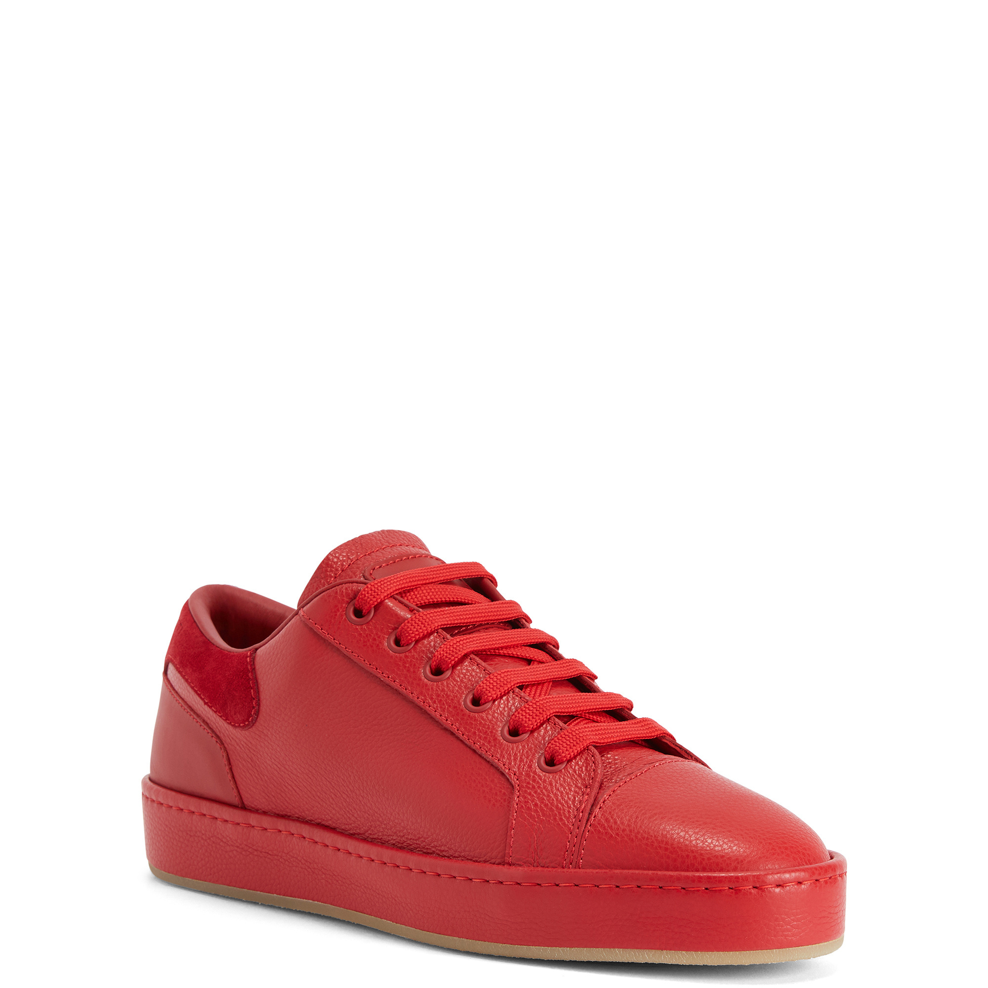 These low-top sneakers, crafted from red leather and velour with matching cotton laces, feature a high-frequency 'Graffio' processing on the tongues and a hot-stamped 'Logo Lettering' detail on the back of the upper; matching rubber soles give the design a perfect finish.
