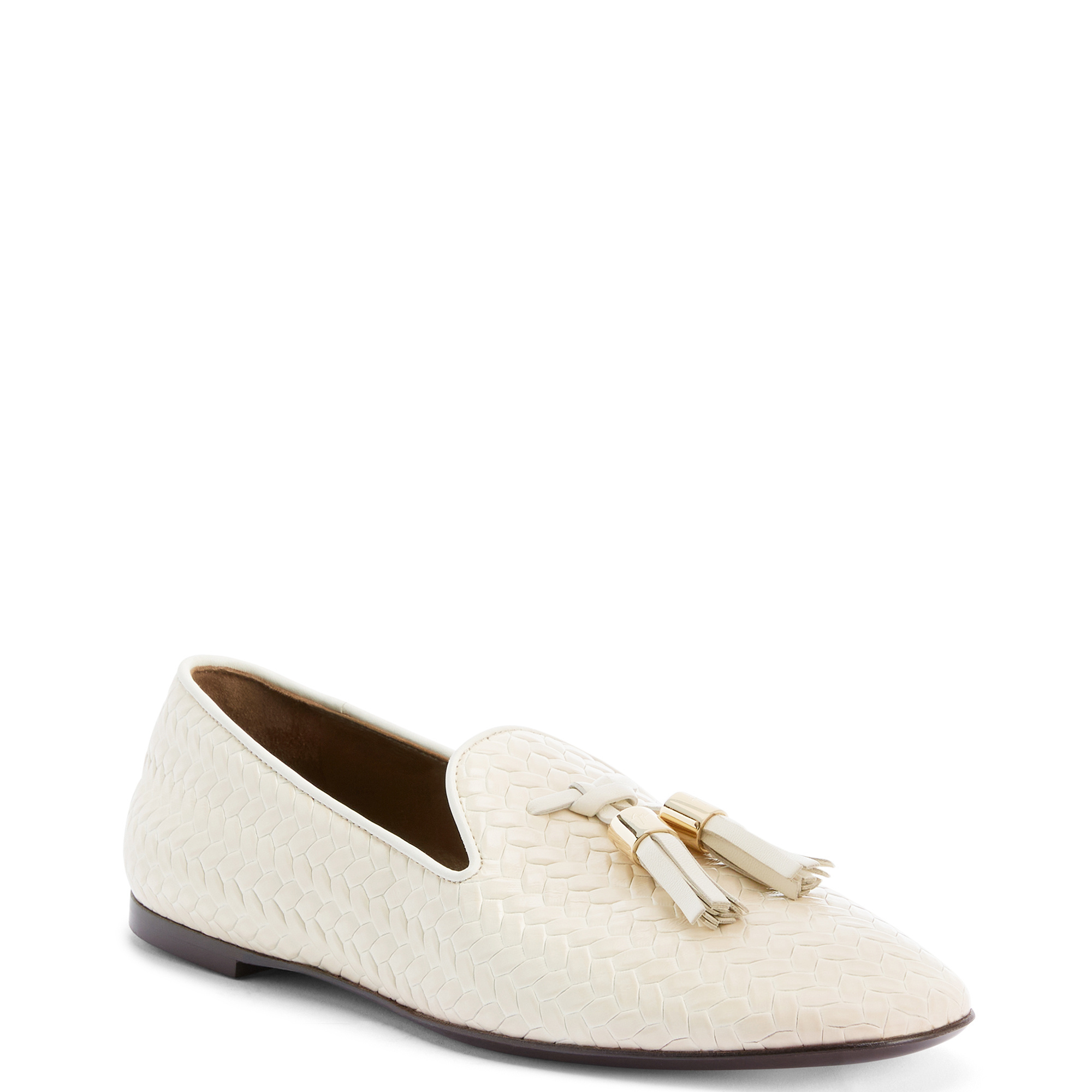 Grosgrain-trimmed loafers in woven-print leather with leather tassels and metal detail.