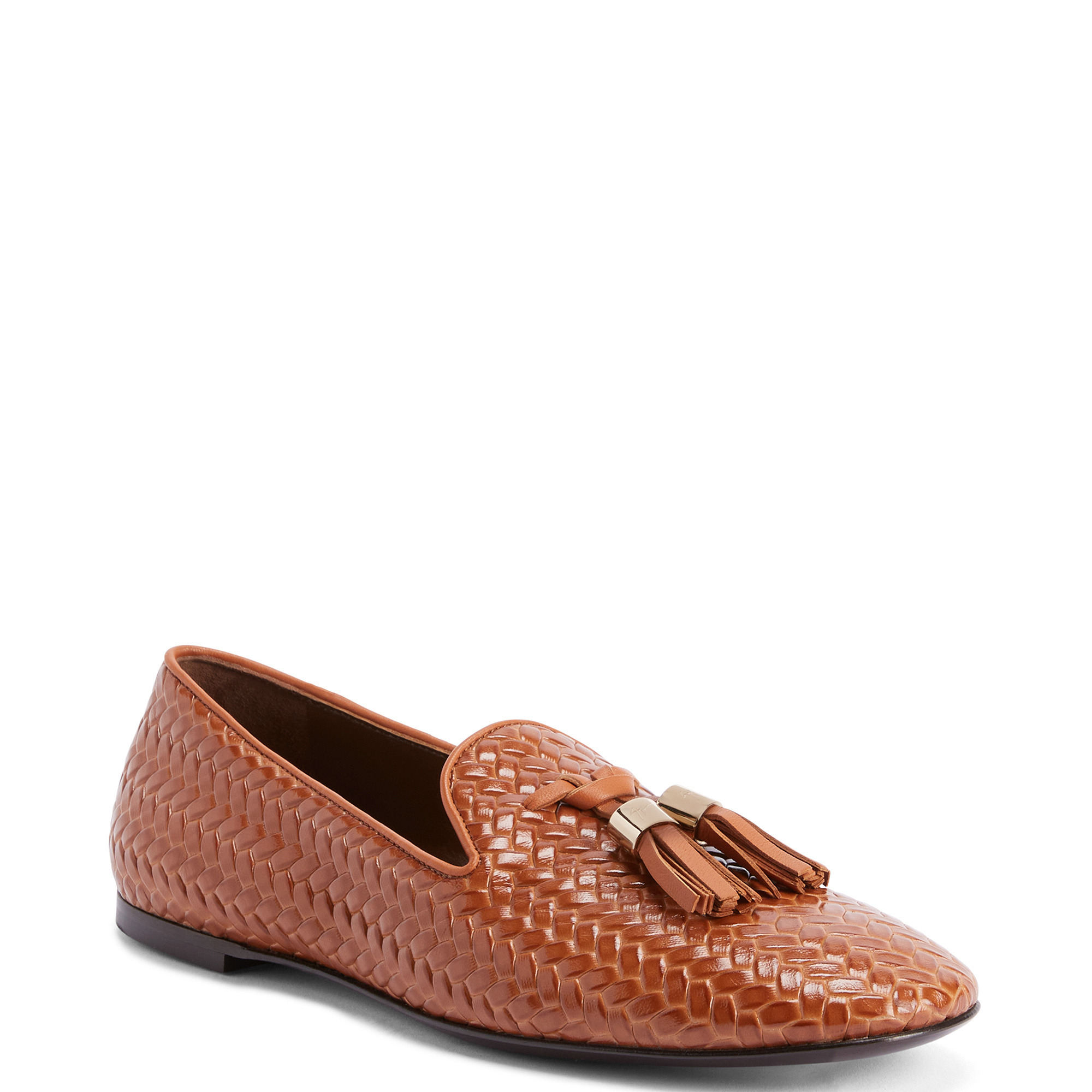 Grosgrain-trimmed loafers in woven-print leather with leather tassels and metal detail.