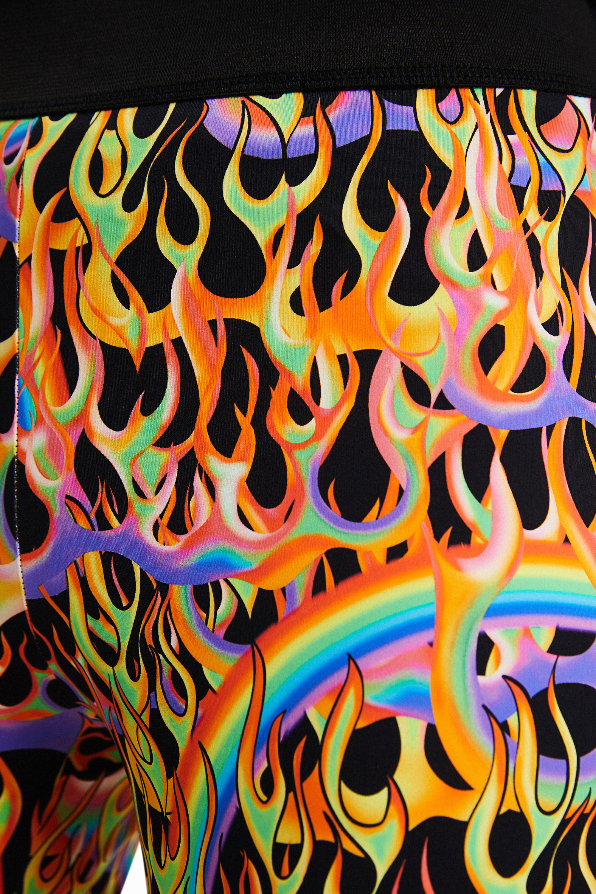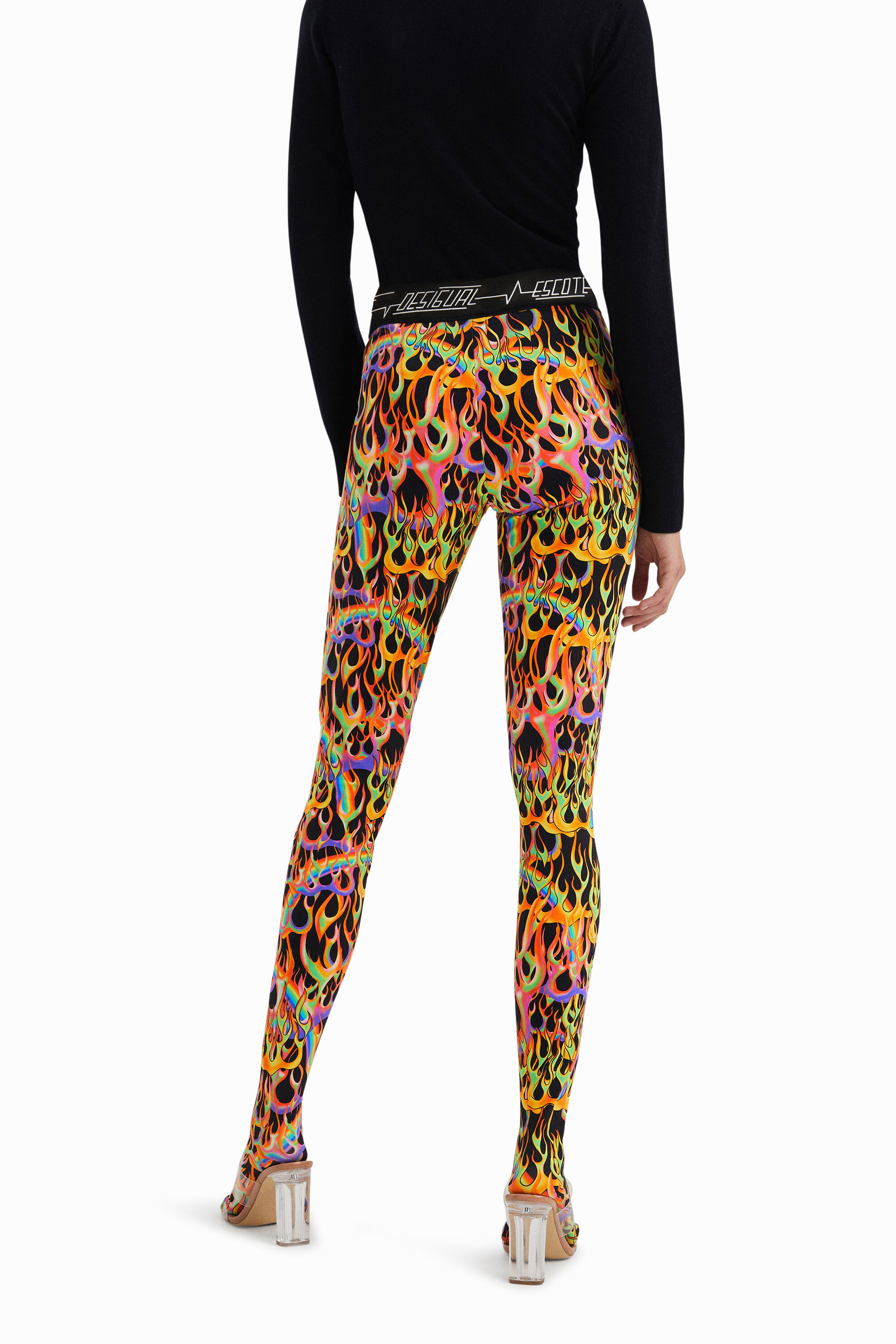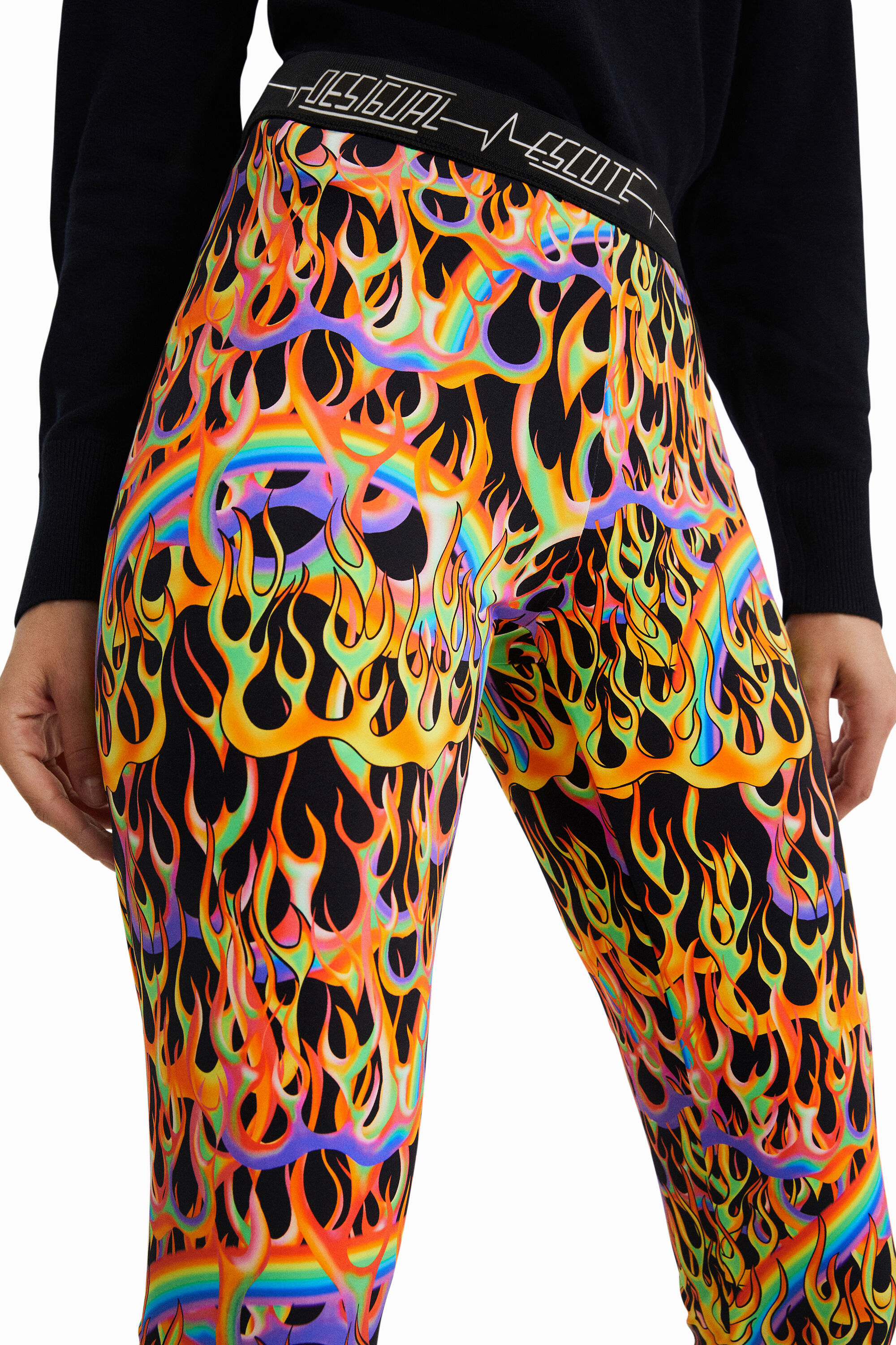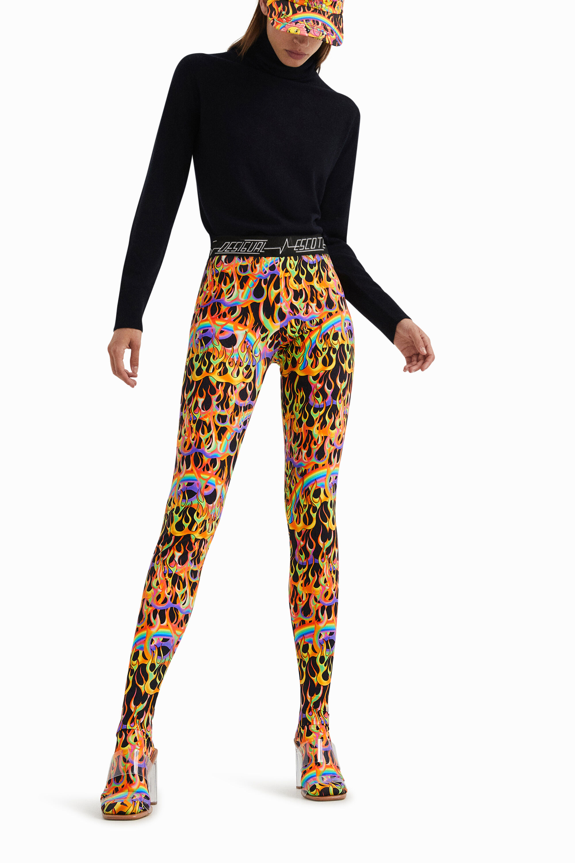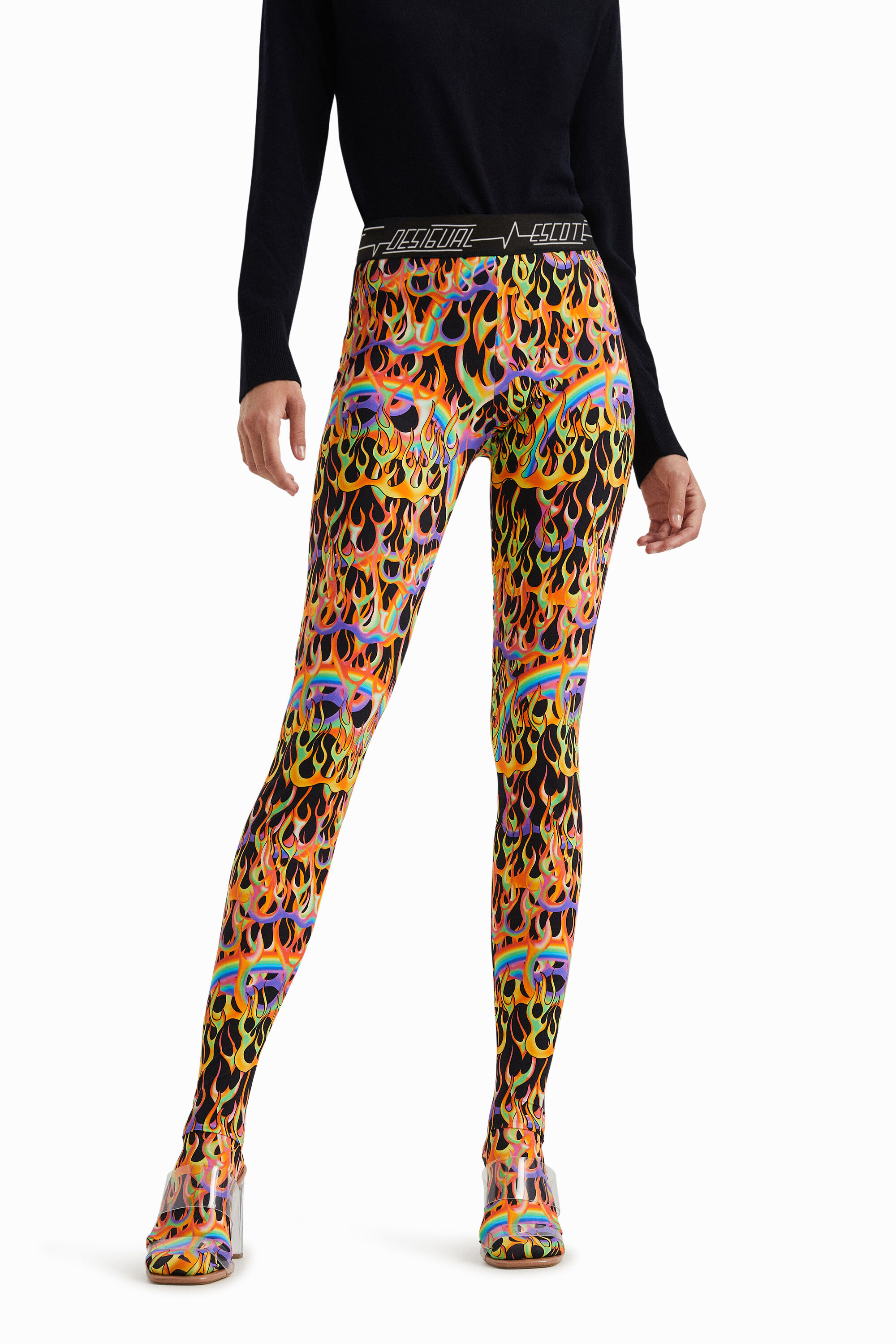 María Escoté has designed the perfect slim leggings to show off her arty flame print, even in open shoes, as they don't stop at the ankle but (surprise!) cover the entire foot.Mid-riseArty flame printElasticated waistband with Desigual and María Escoté logoCovered footDesigned by María EscotéSlim fitLong leggings