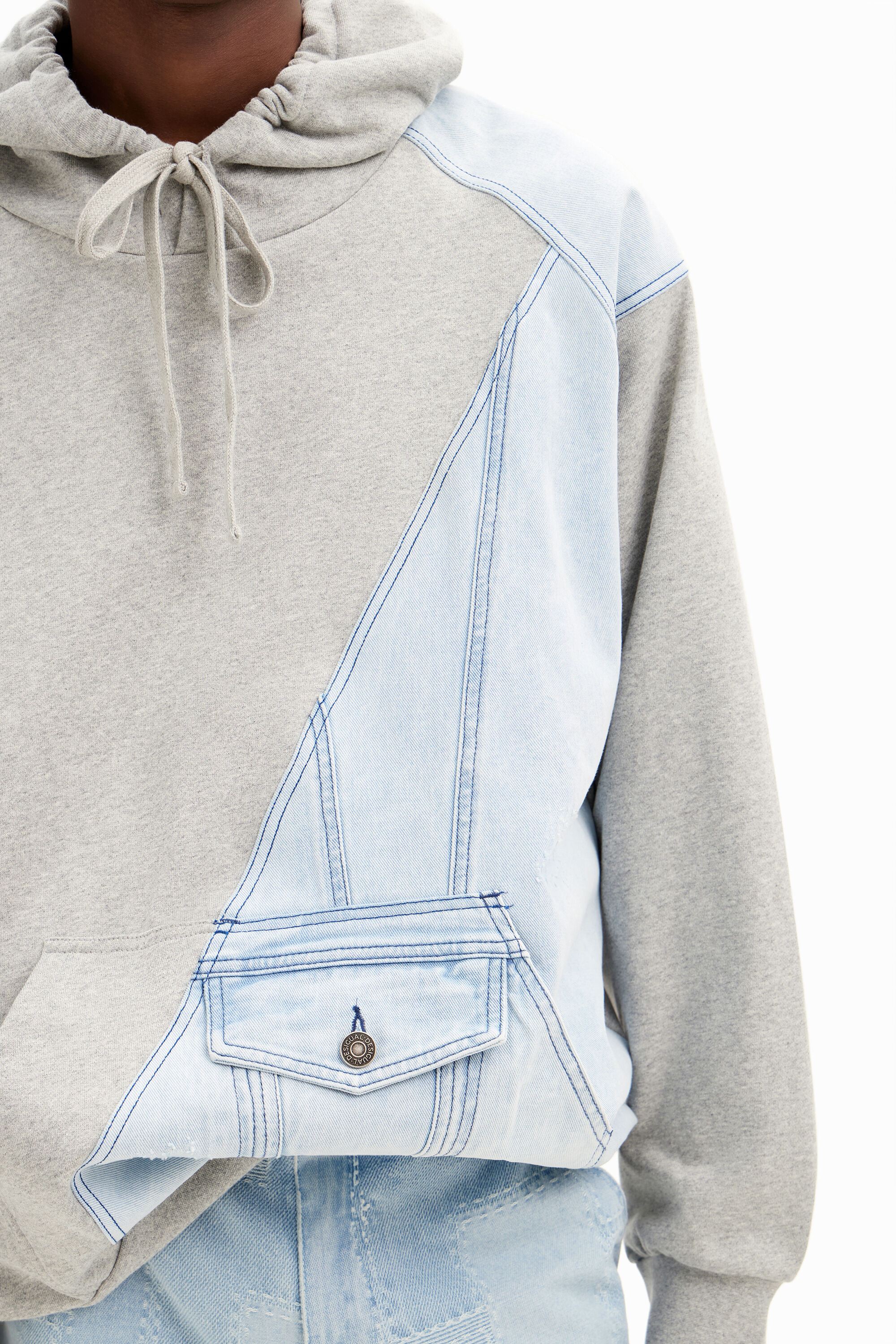 Long-sleeve sweatshirt with hood and pouch pocket in denim hybrid fabricFit: